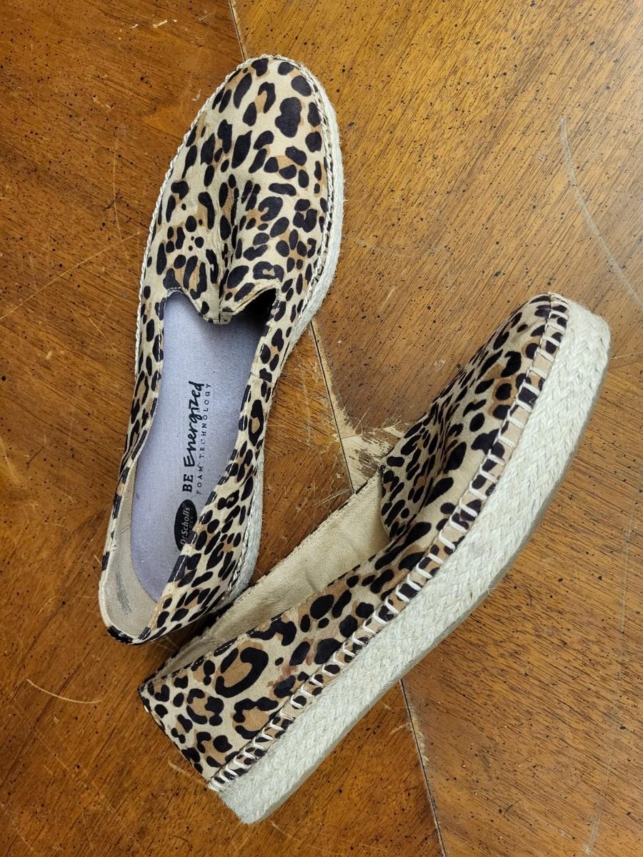 Shoes:1 Dr Scholls Size 11 Leopard print slide on shoes;