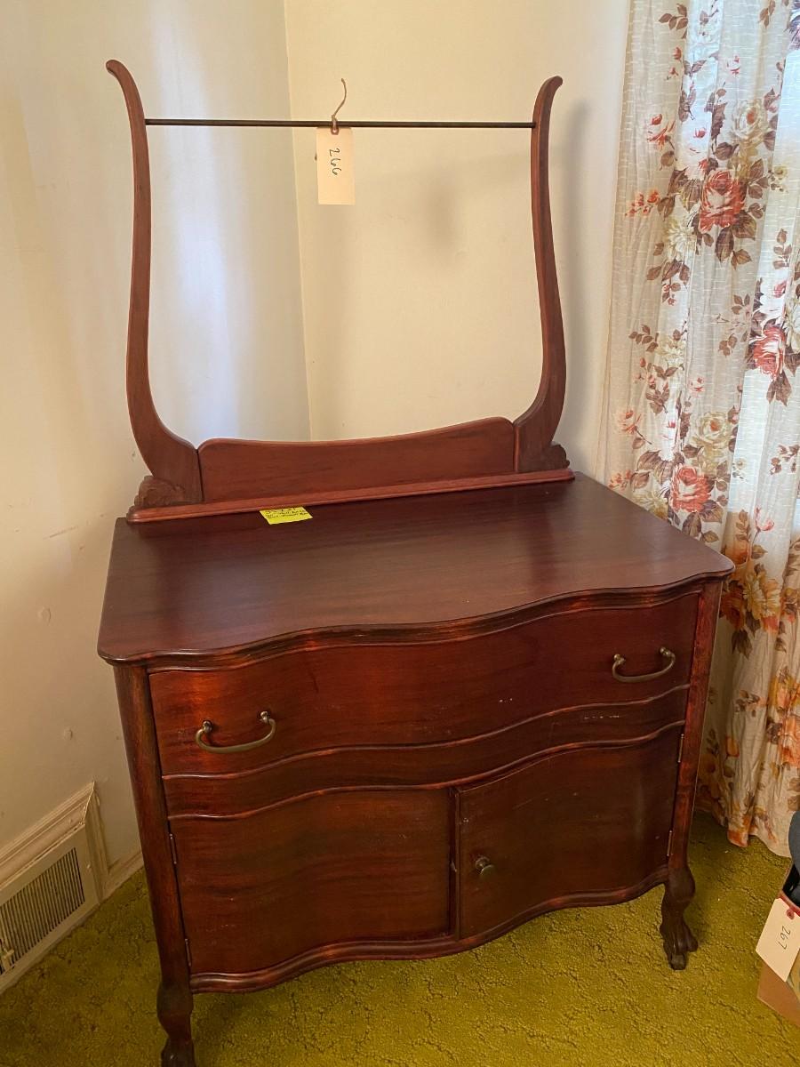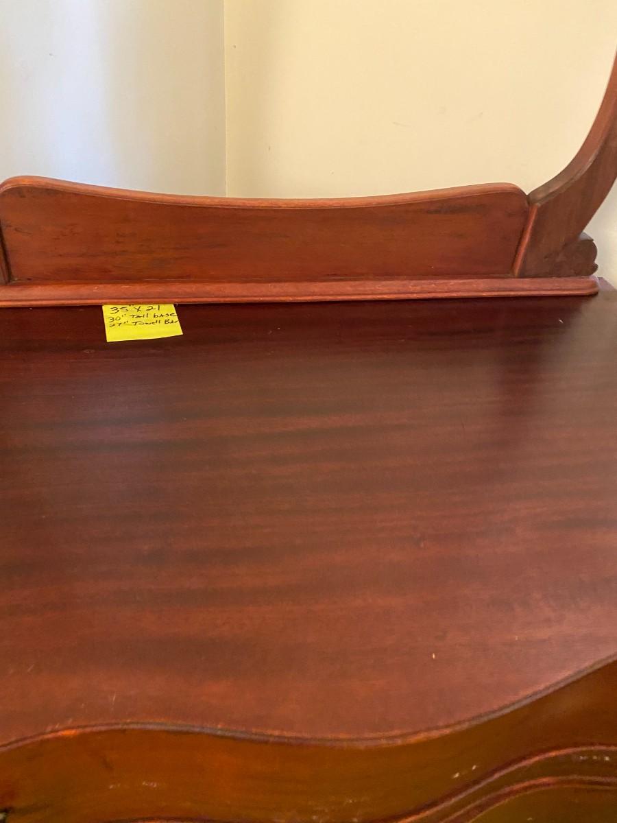 LOT 266 1 Drawer 2 Door Antique Mahogany Wash Stand 35x21x30t, Towel Bar Section 27 in Tall