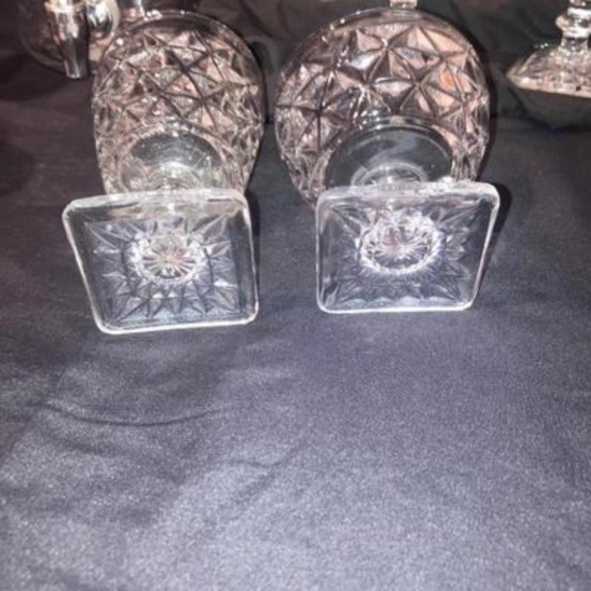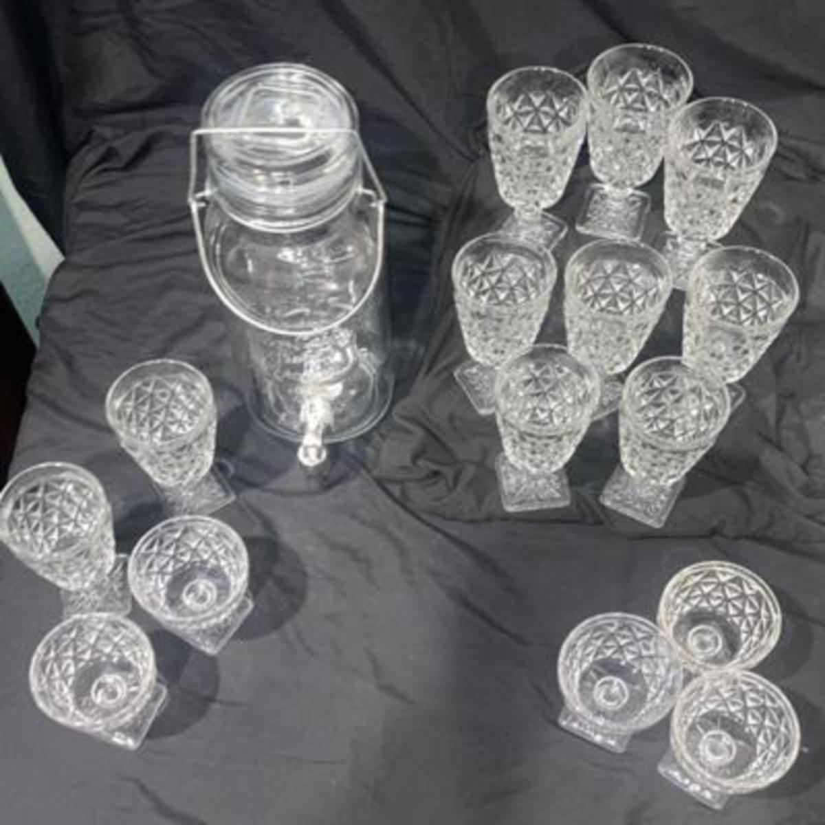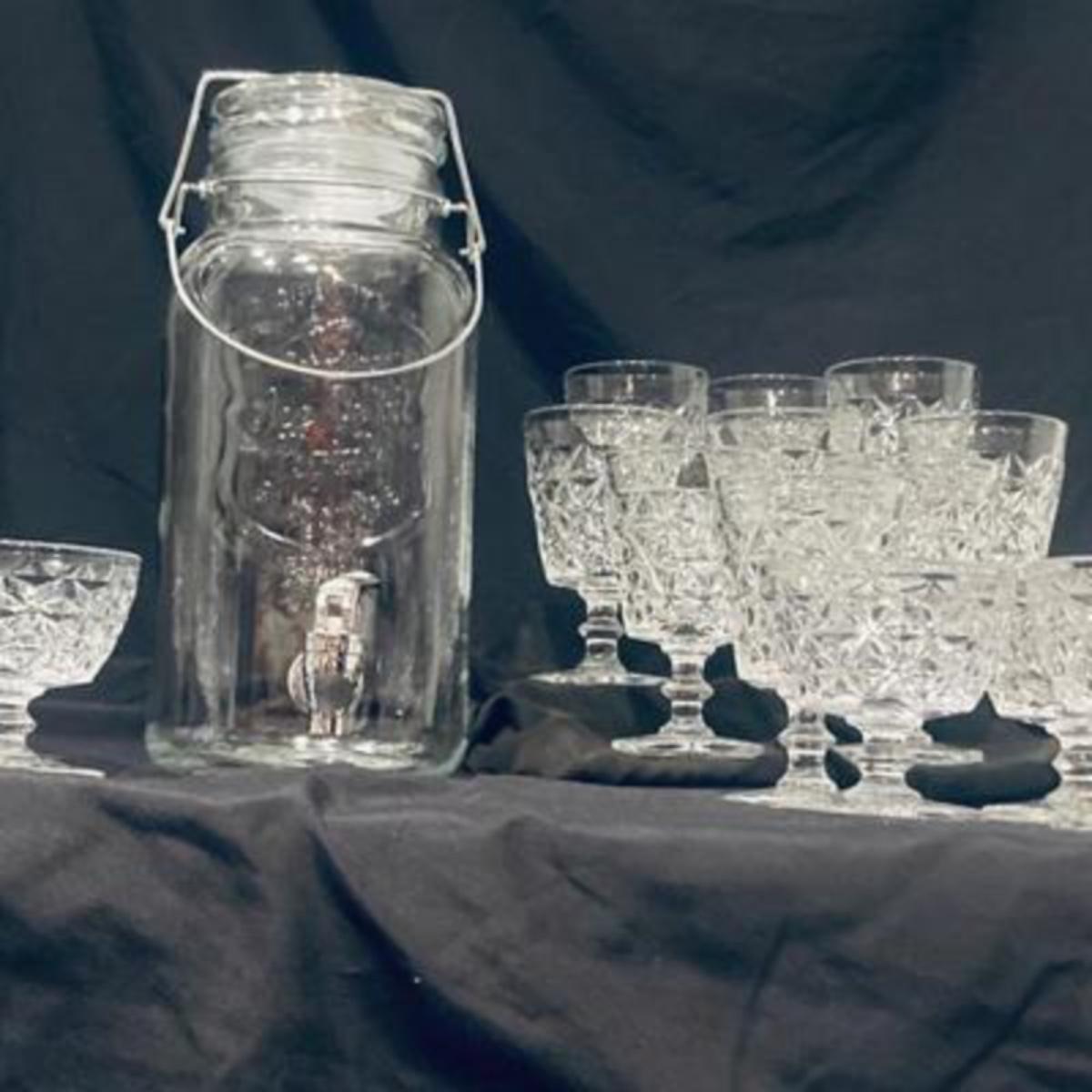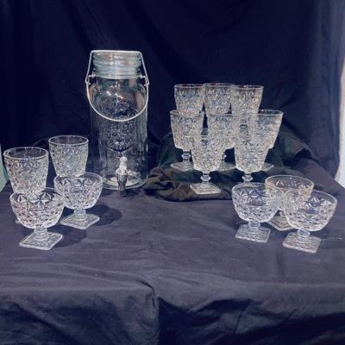Qty-10 Water Goblets Style- Mt. Vernon Clear, Chris-cross Diamonds by imperial Glass Ohio 5-3/4H x 3-3/8”w qty-5) Champagne/Tall Sherbet Glasses 3-1/2”THx 3-3/4”w same style. Great for any occasion!