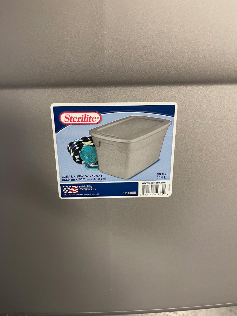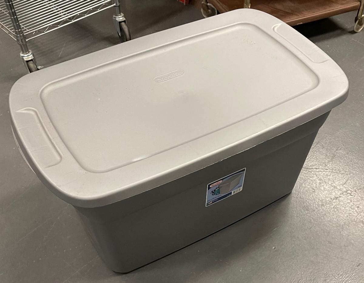 1 Gray Tub  Sterlite 30 - Gallon with lid.