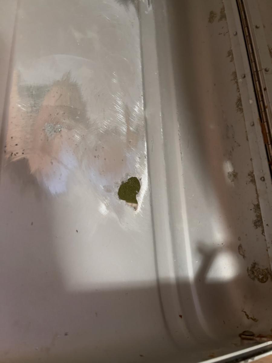 It has a hole in it. See PHOTO - WEIRD!!!! This item is in the BASEMENT of Second House. You Must Carry it up the stairs and bring Help!!!!!