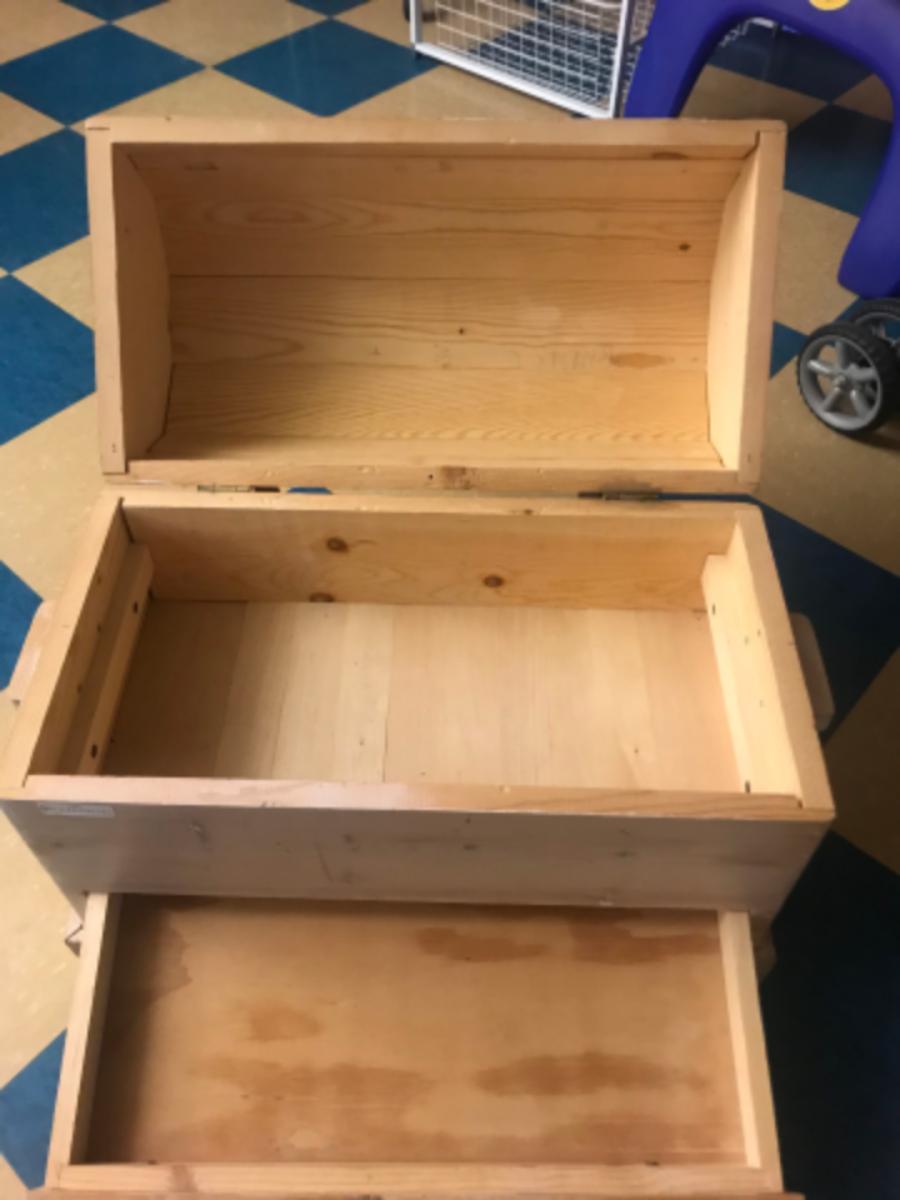 wood box storage:1 Hand crafted, functional, wood storage box, lift out tray, drawer, hinged lid;