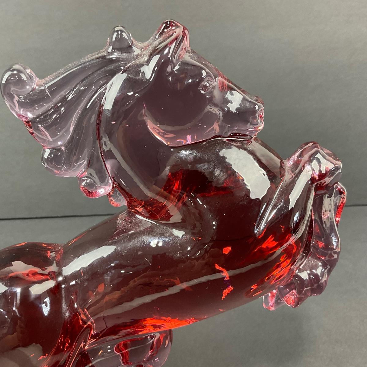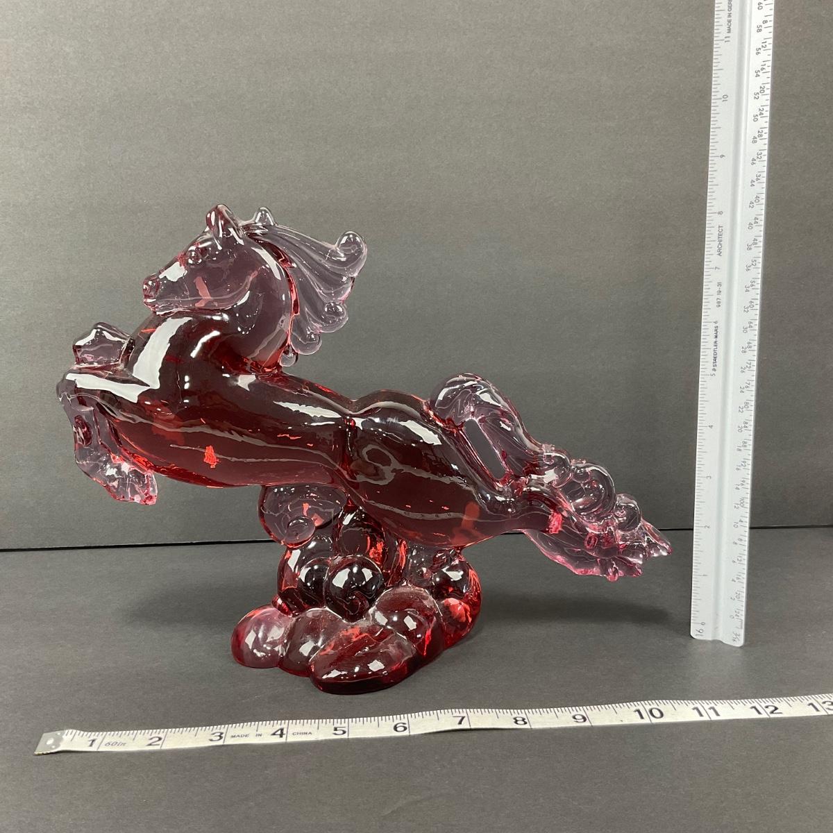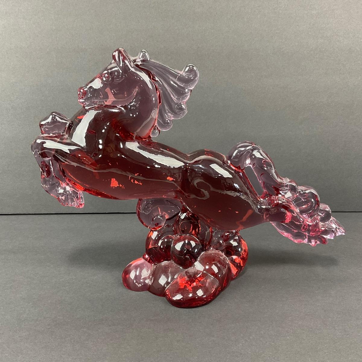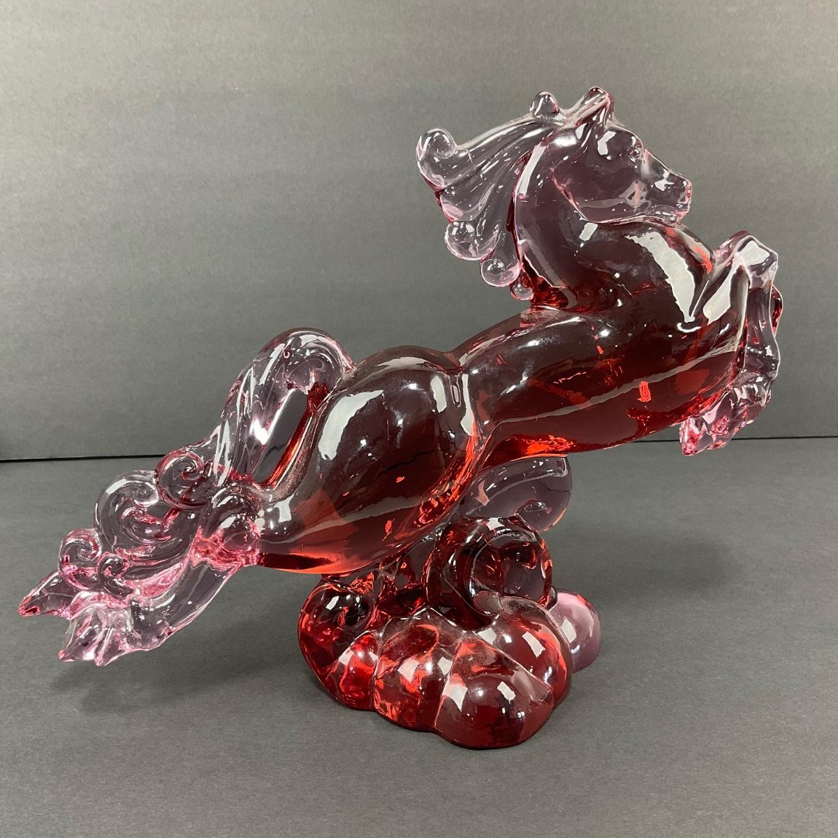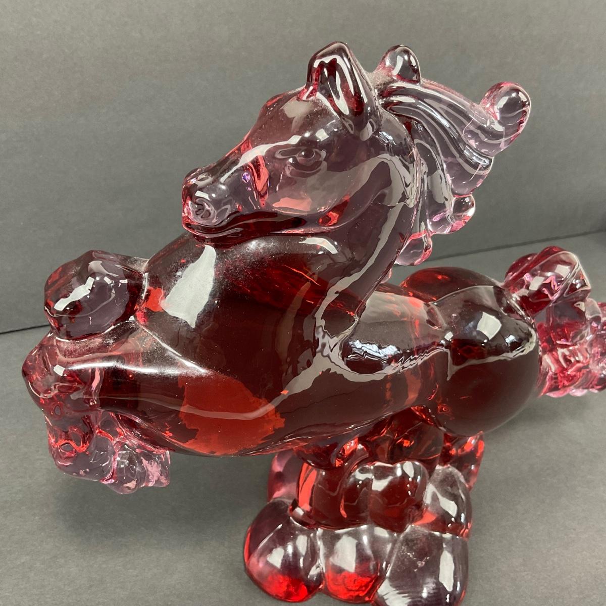 One vintage marked HEISEY by Dalzell Viking lavender ice flying mare glass figure. The is a small chip and the bottom base pictured but otherwise this piece is in great condition. Please see photos for details and condition. Any condition statement is given as a courtesy to a client, is an opinion, and should not be treated as a statement of fact. Reference to condition written, oral or within a condition report shall not be regarded as a full account of condition and may not include all defects, alterations, or restorations. Absence of a condition report does not imply a lot is flawless or lacking imperfections or damage. Katherine’s Auction & Appraisal Service shall have no responsibility for any error or omission. Returns shall not be accepted on the basis of condition. ::: Shipping is available on this lot. If you require shipping you must let us know at the close of the auction. We will coordinate with you after the item has been won. Shipping fees will include insurance up to or exceeding the value of all items being mailed. If you have any questions regarding this lot please contact the auctioneer either via this website, by direct email or by phone. PICK UP TIMES and other important information can be found in the TERMS and DESCRIPTION of the auction. Please take a look for pertinent information. Thanks!