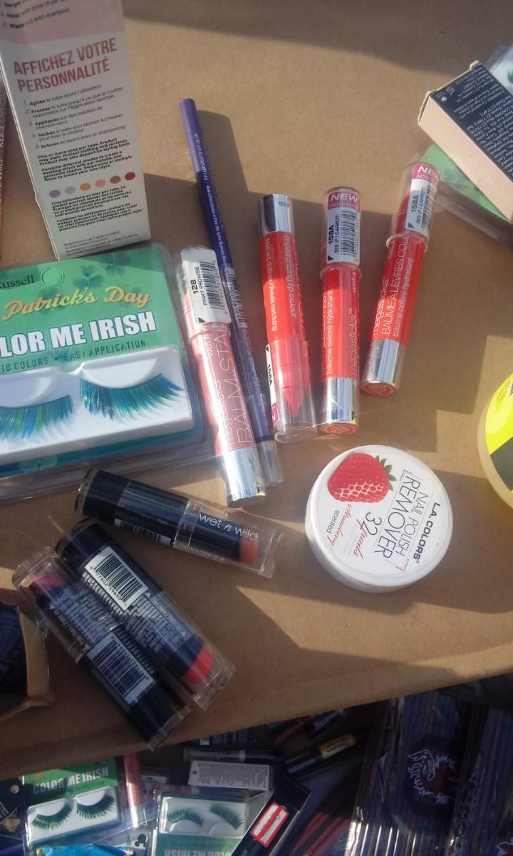 This lot may contain eyeline, lipliner, eyelashes, foundation, powder eye shadows and more