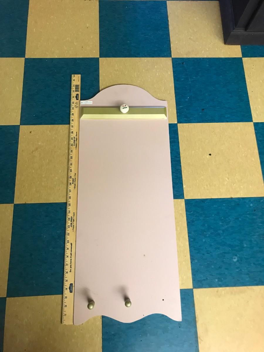 Hanging room decor :1 Mary Engelbreit Ink: Wood, hand painted, top opens to hold calendar, bottom pegs hold lightweight items;