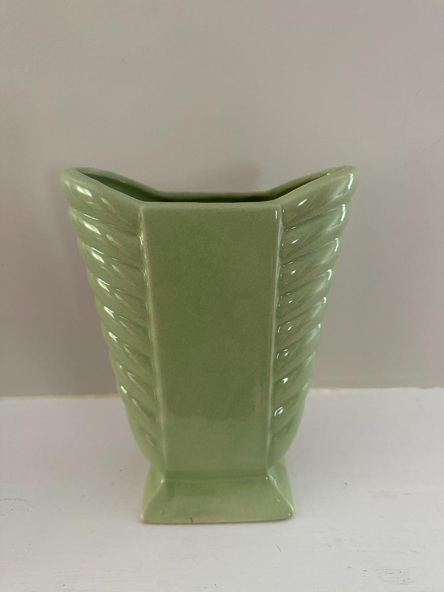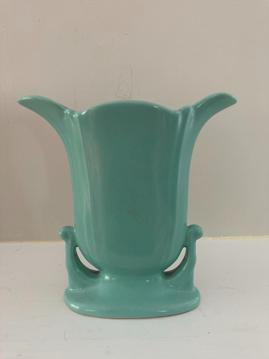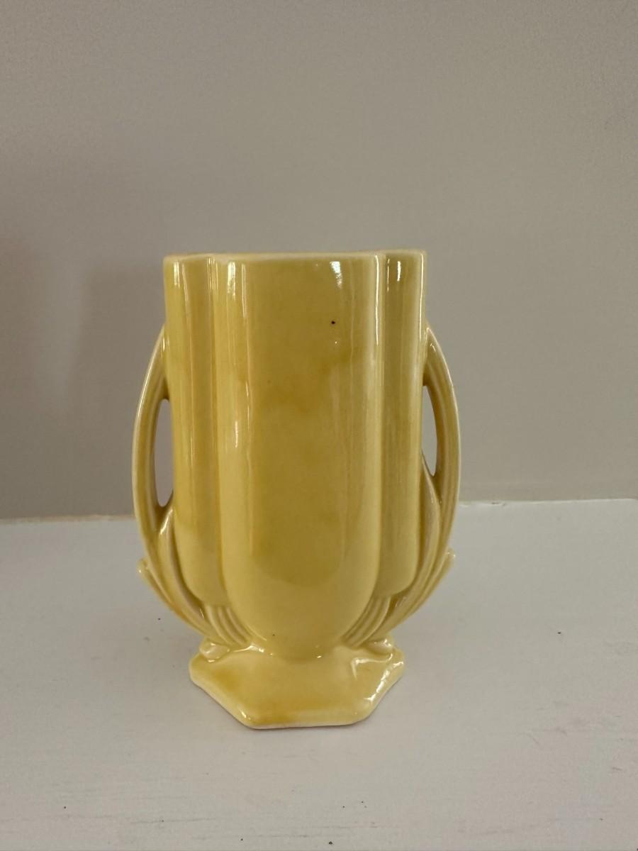 6" Yellow McCoy Vase. 8"h x 6"w Green Vase, 7"h x 7"w Aqua Vase, 5"w x 6"h White Vase, 5.25"w x 8"h Green Vase