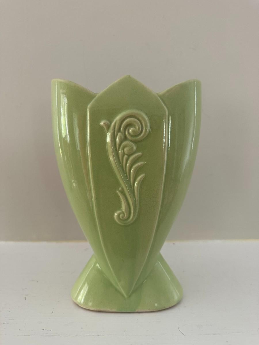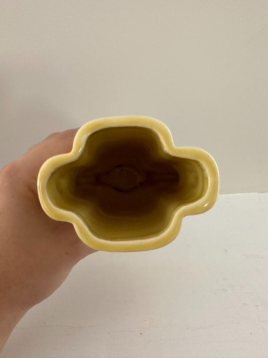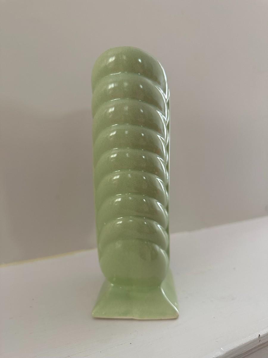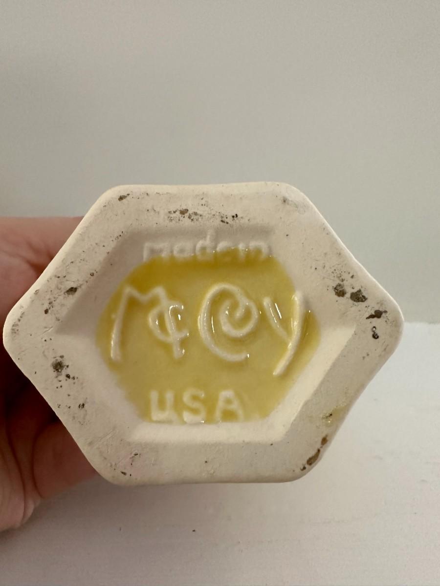 6" Yellow McCoy Vase. 8"h x 6"w Green Vase, 7"h x 7"w Aqua Vase, 5"w x 6"h White Vase, 5.25"w x 8"h Green Vase