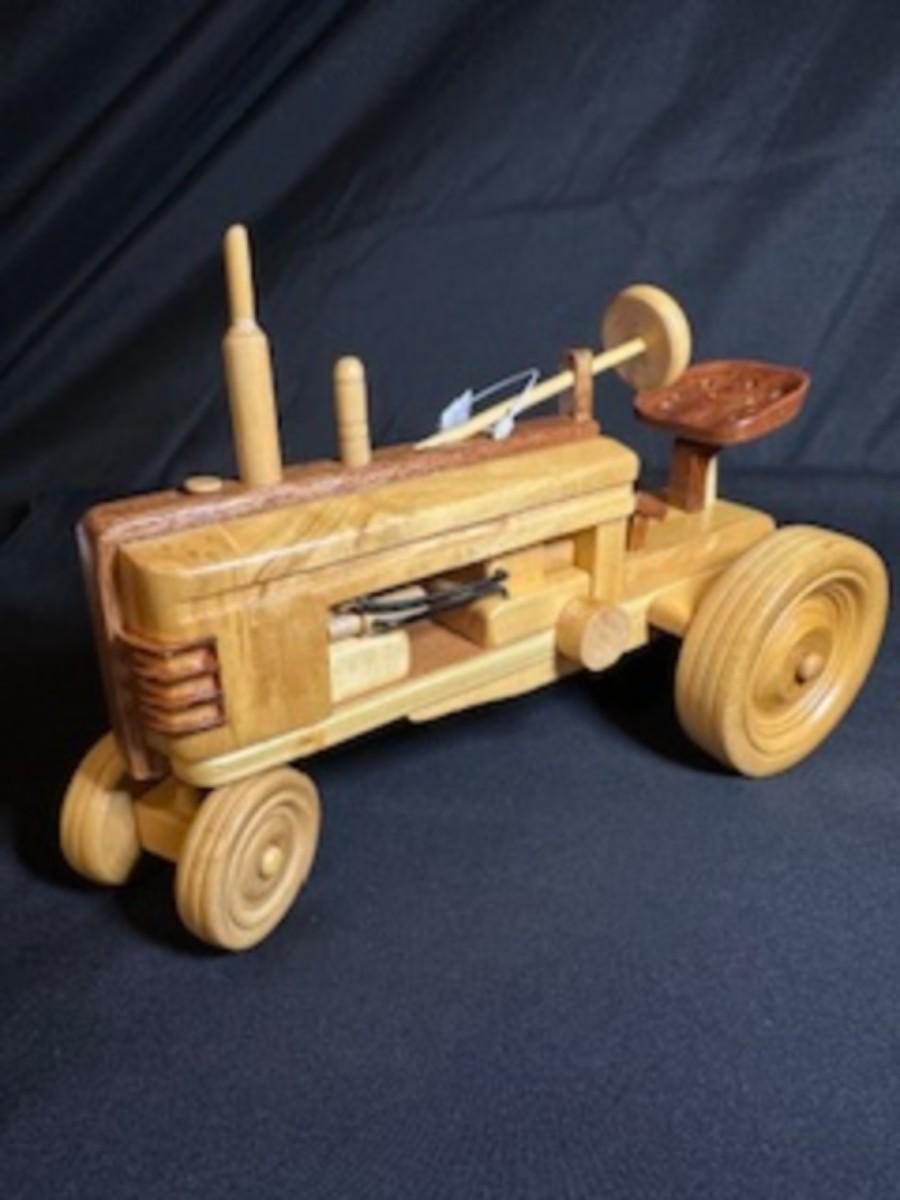 1 MORE HANDCRAFTED WOODEN TRACTOR AND IMPLEMENT