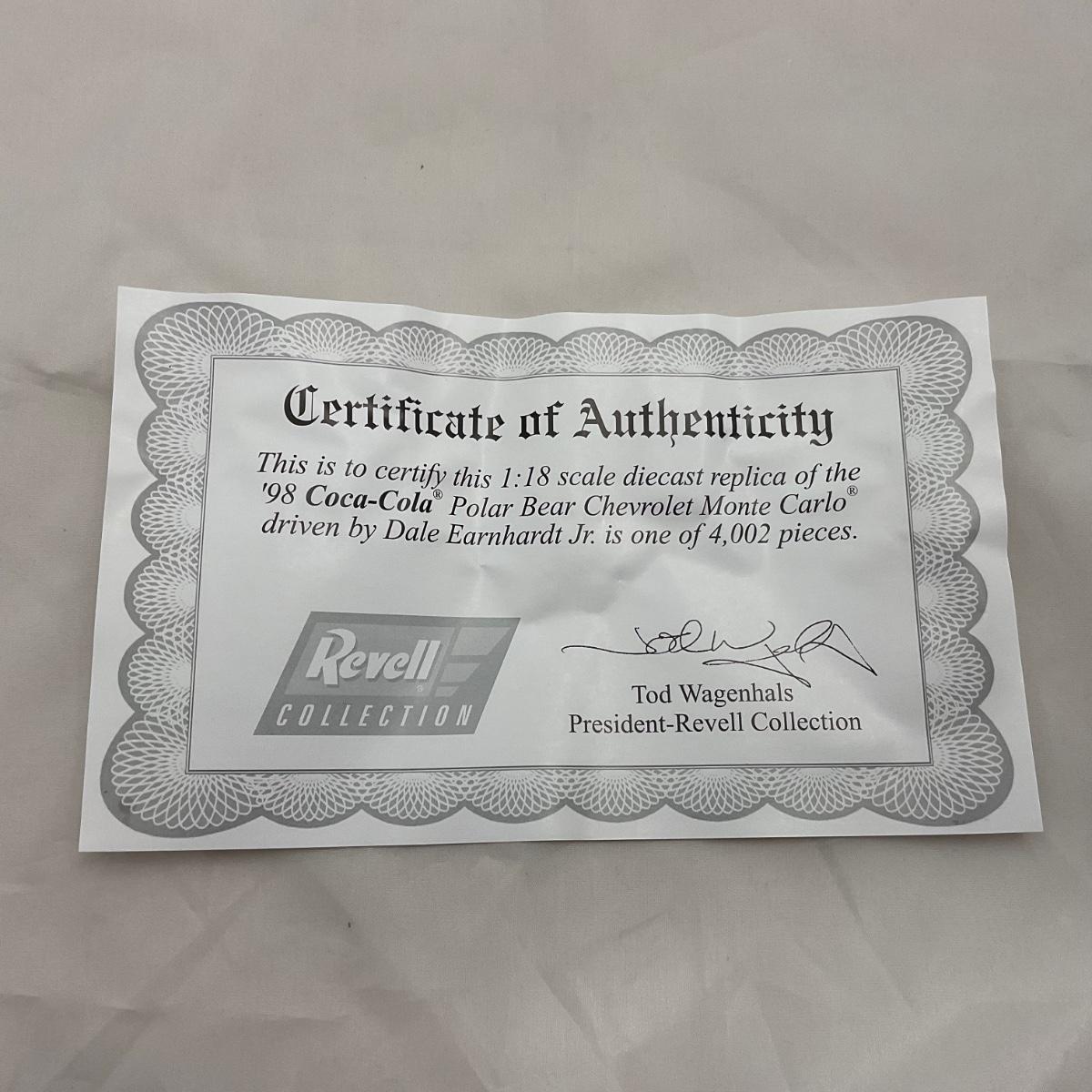 One NASCAR die cast 1:18 scale 1998 Coca-Cola Polar Bear Monte Carlo figure. Comes with a Certificate of Authenticity. Please see photos for details and condition. ::: Shipping is available on this lot. If you require shipping you must let us know at the close of the auction. We will coordinate with you after the item has been won. Shipping fees will include insurance up to or exceeding the value of all items being mailed. If you have any questions regarding this lot please contact the auctioneer either via this website, by direct email or by phone. PICK UP TIMES and other important information can be found in the TERMS and DESCRIPTION of the auction. Please take a look for pertinent information. Thanks!