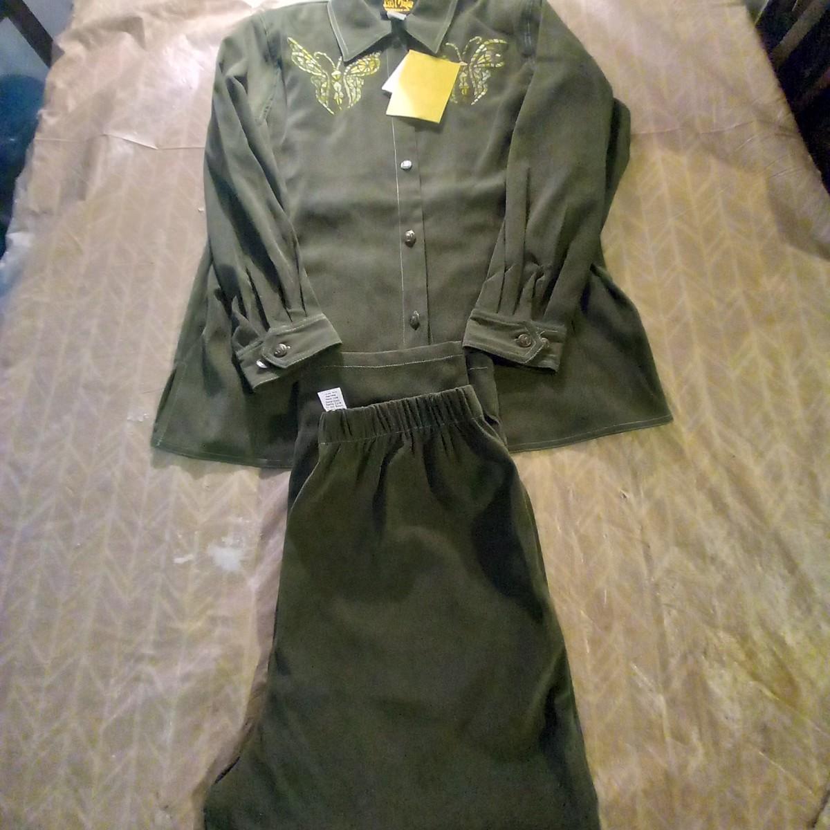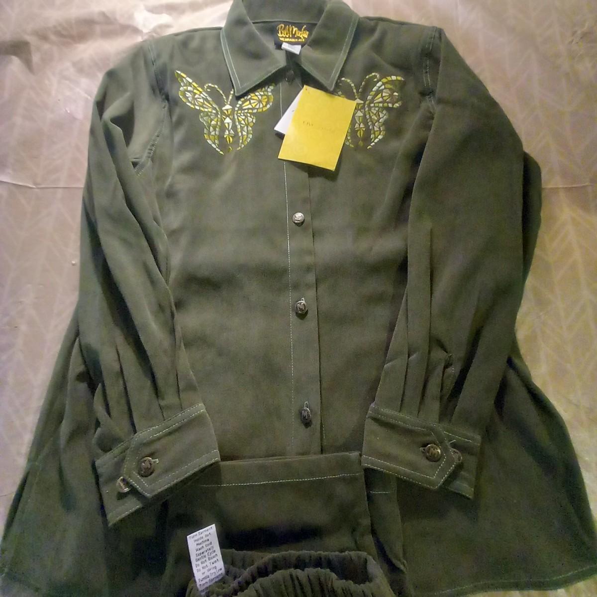 this lot is for 1 New 1 Bob Mackie2 PC Olive Green Pants Set Size L