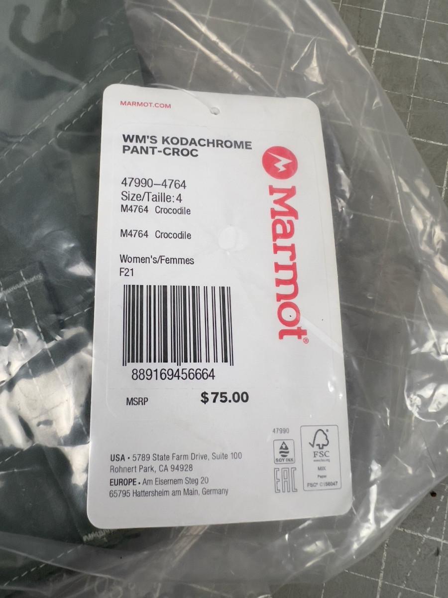 (1) New MARMOT Green Pants Ladies Size 4 SMALL