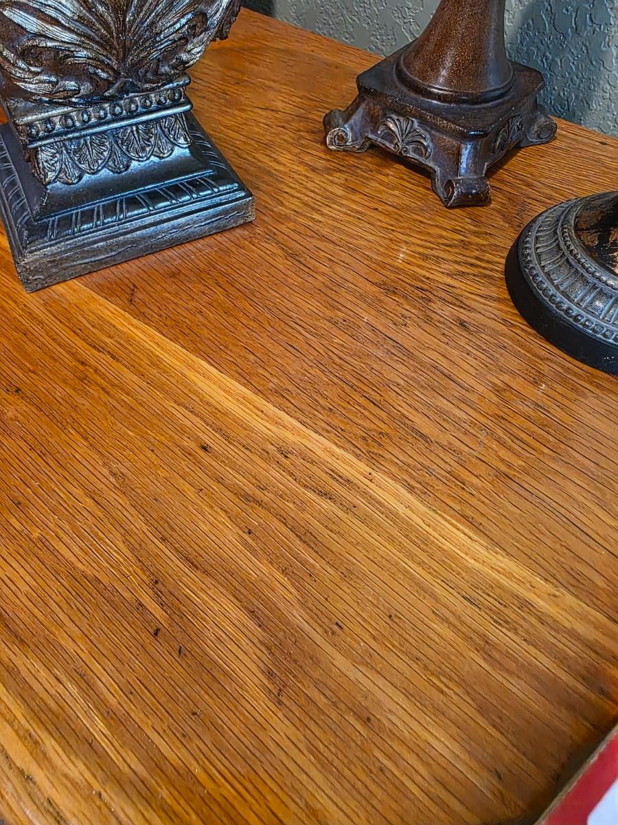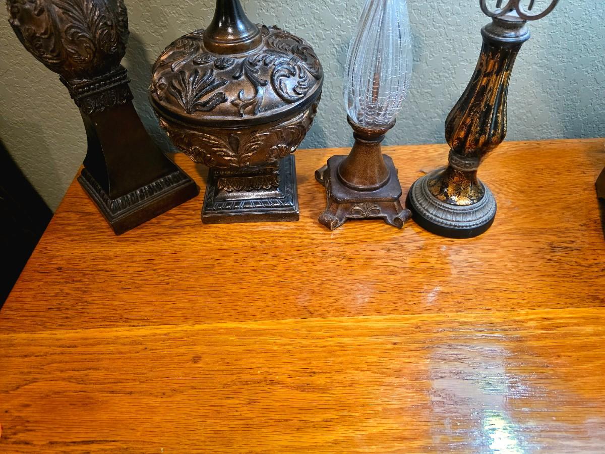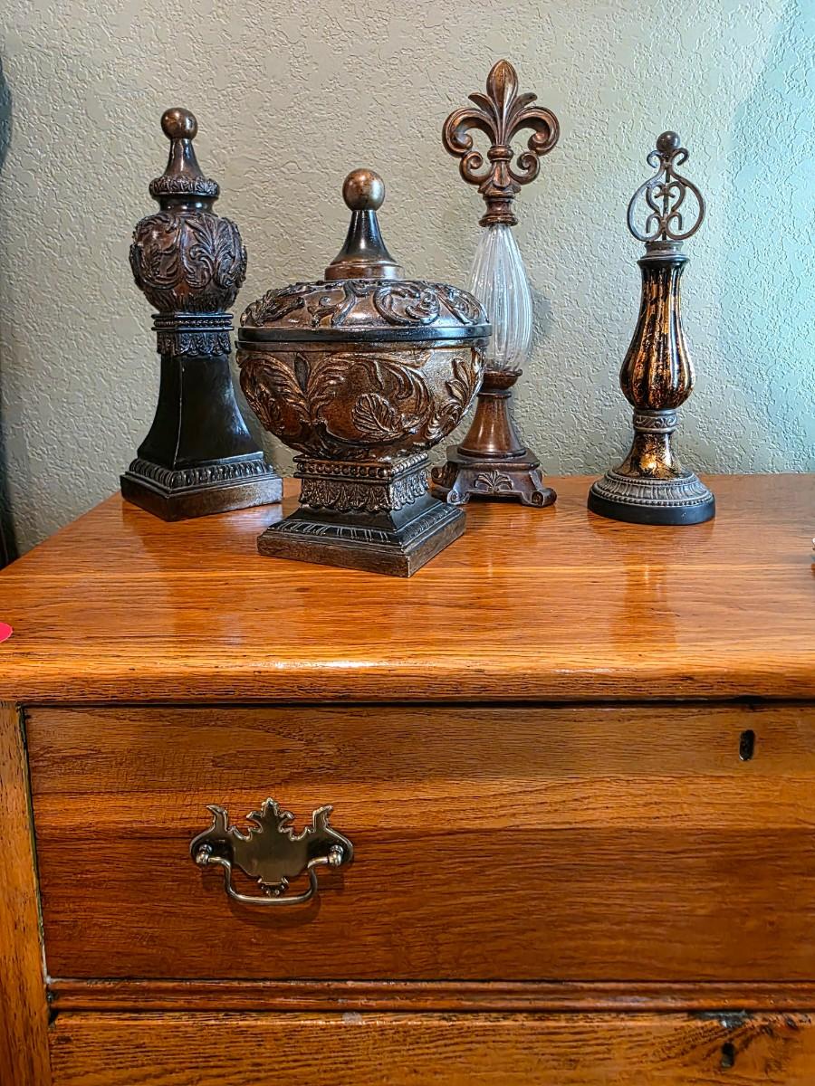 1 nightstand with 4 tabletop decor pieces.
