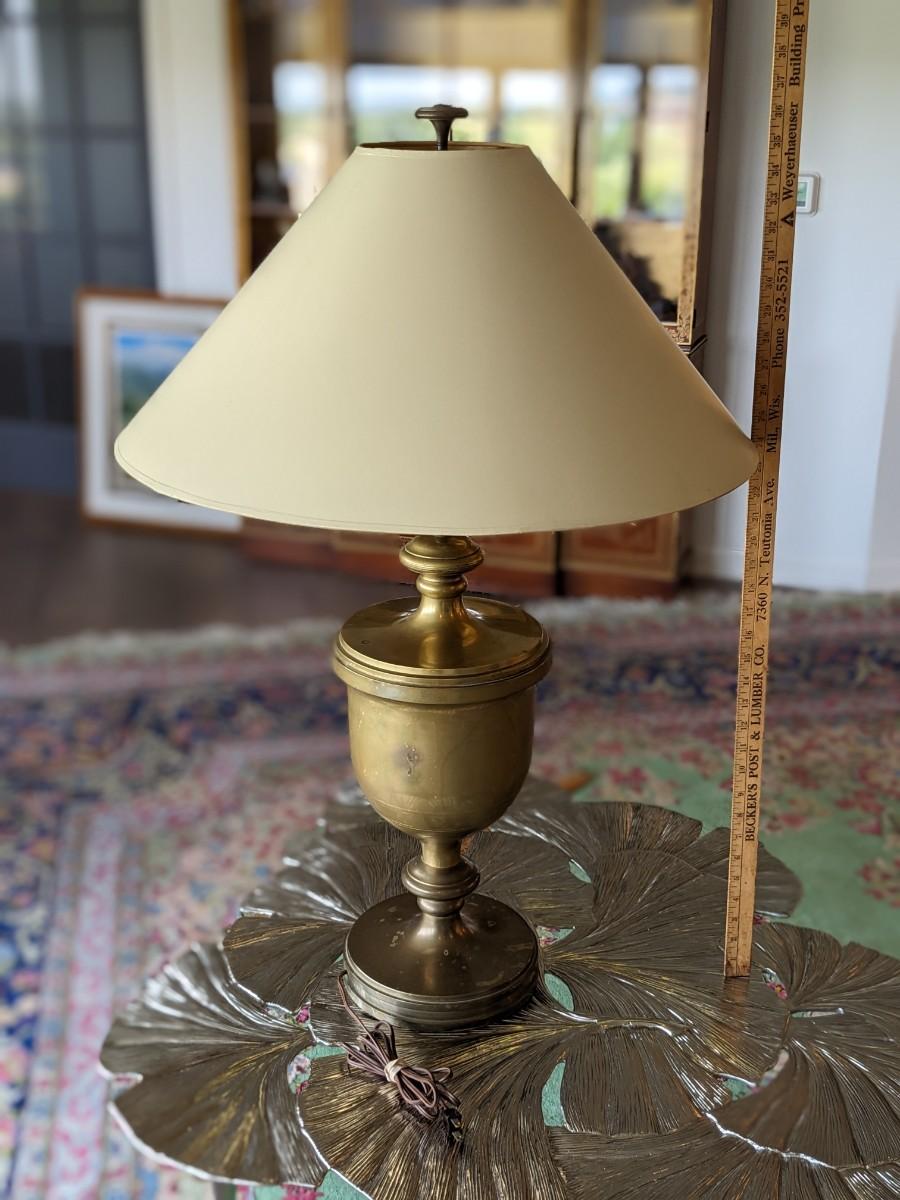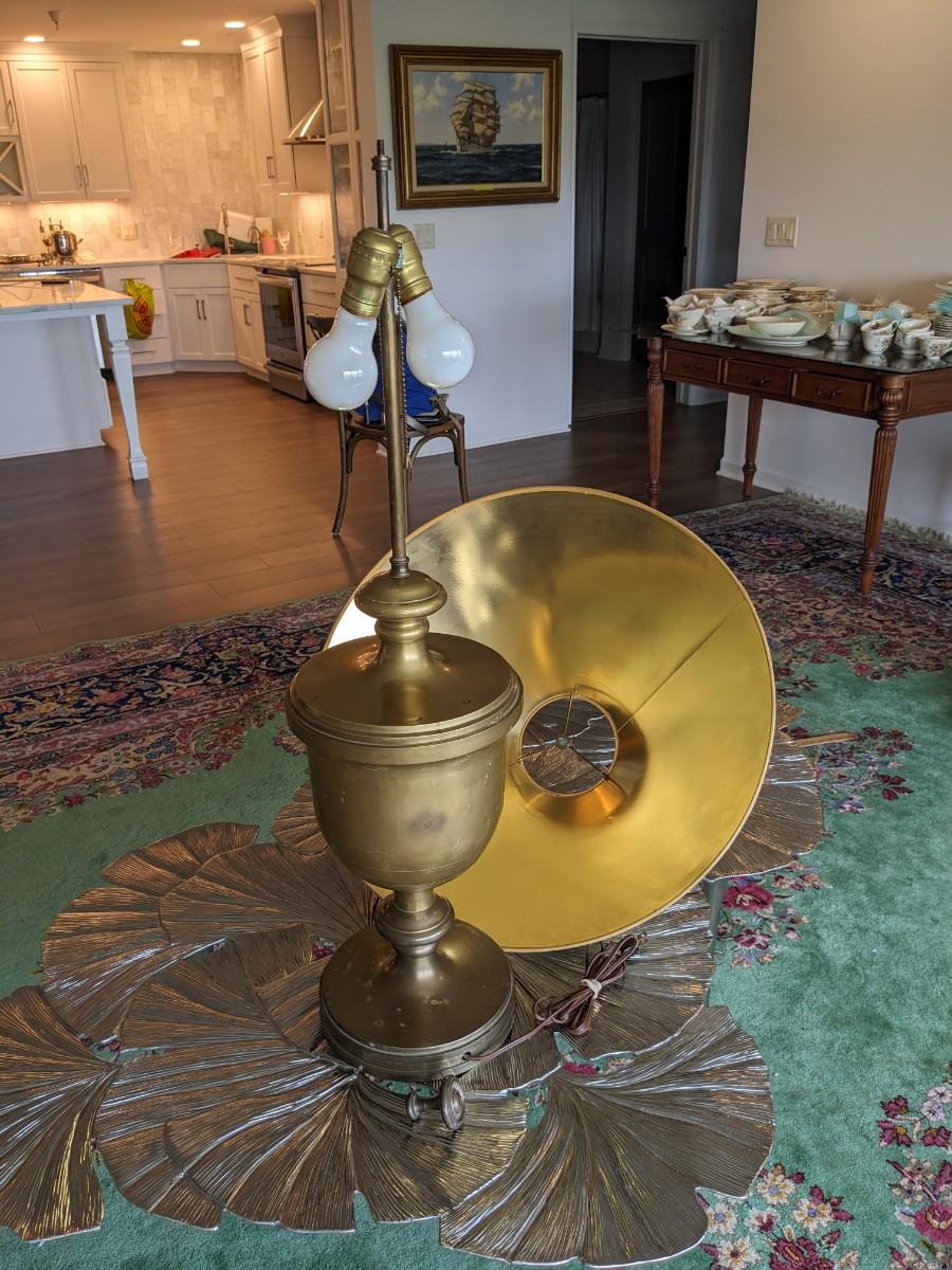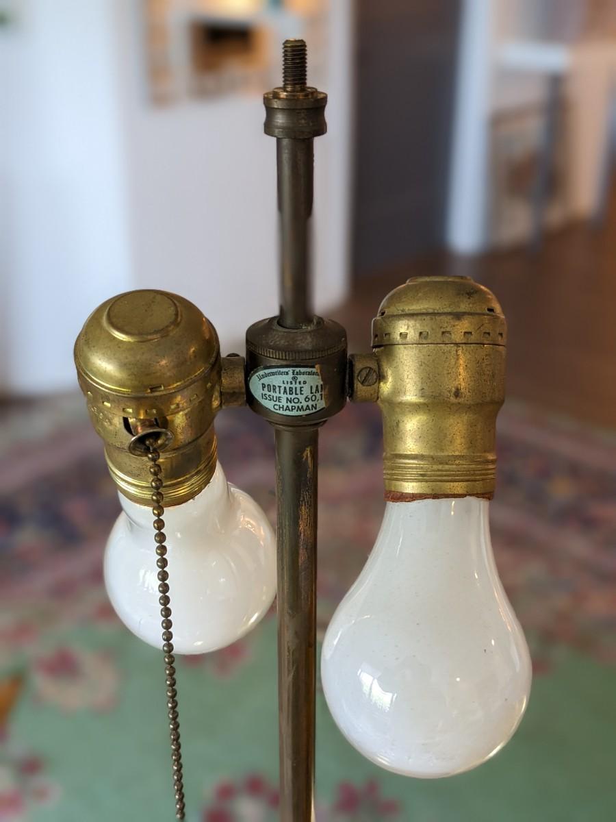 1 of 2 Antique Brass 2 Bulb Lamp