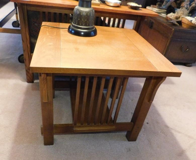 1 of 2 Mission Style Lamp Tables in good condition. May have scratches or wear.