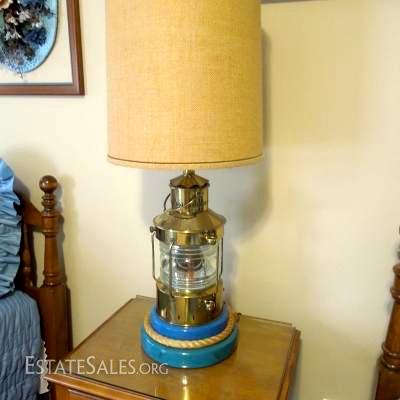 1 of 2 Modified Nautical Lantern Brass Lamp with Burlap Shade