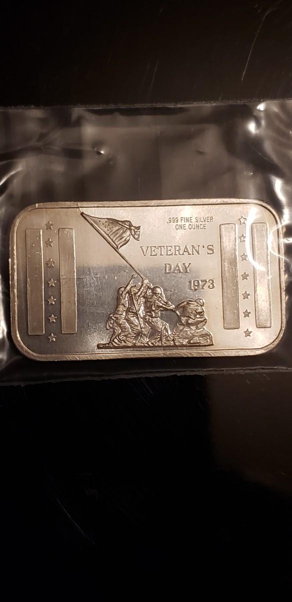 1 oz 1973 vintage silver bar Very rare Veterans Day 1973