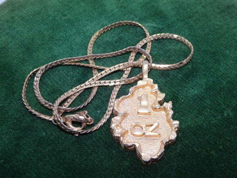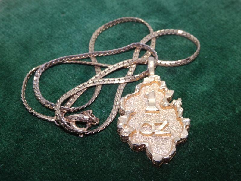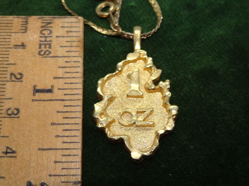 1 OZ Gold Nugget Necklace Pendant, Gold Tone