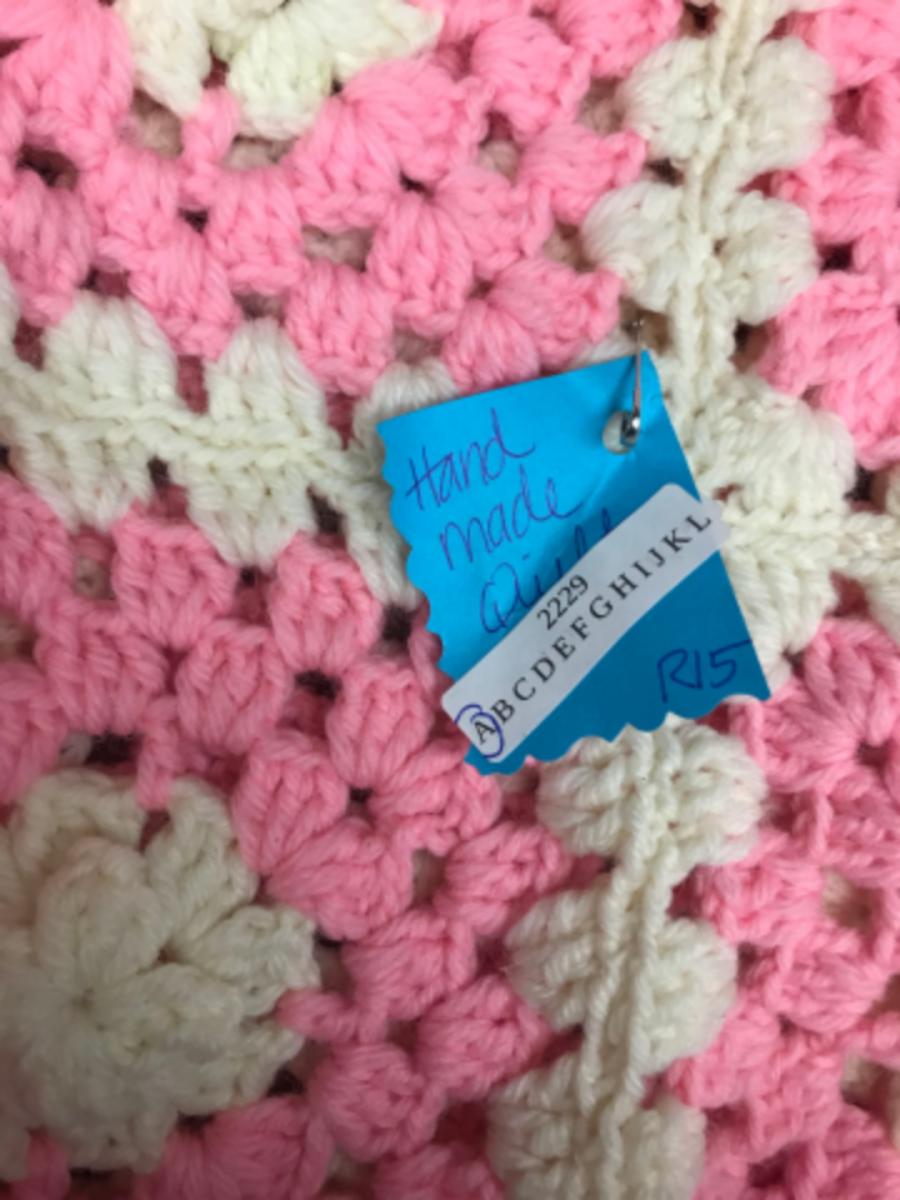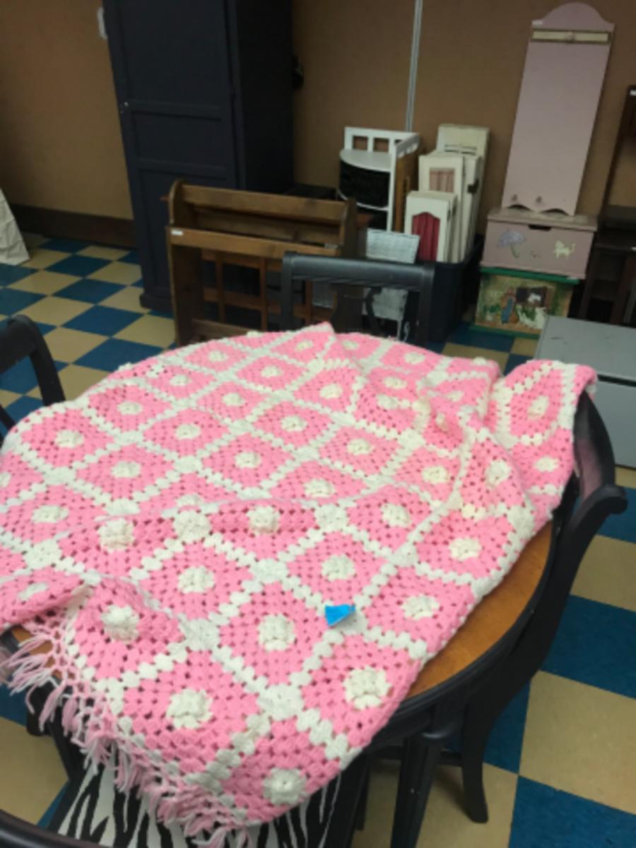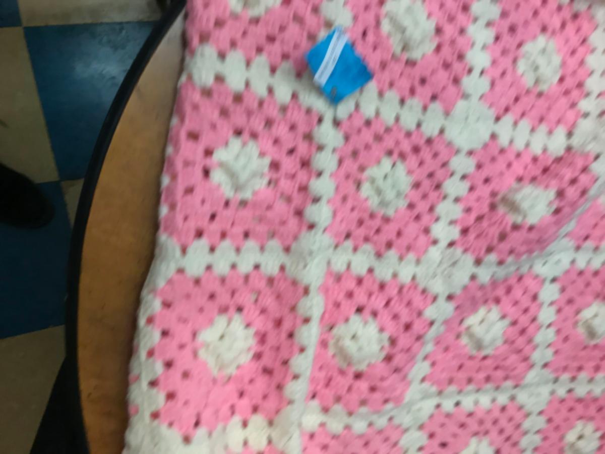 quilt:1 Pink and white granny square quilt, hand made;