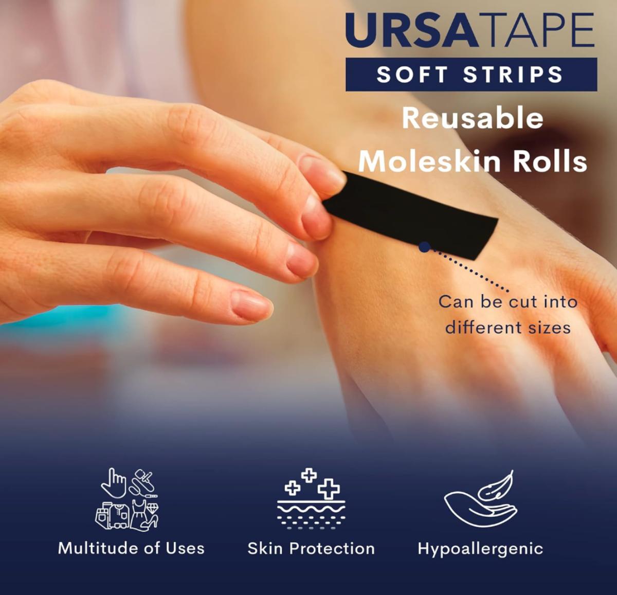 1 Roll of URSA Tape in Black - 39" x 6" - Stretchy Moleskin Fabric Tape Roll, Heavy-Duty No-Residue Fashion Tape & Body Tape for Fabric, Shoes, Skin & More,