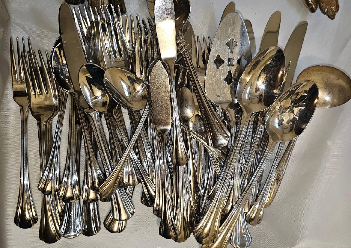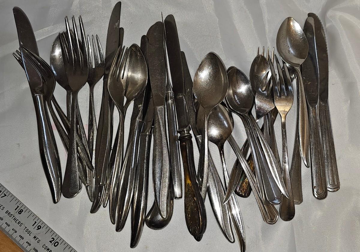 One set Pfaltzgraff flatware, other misc stainless spoons, forks and knives