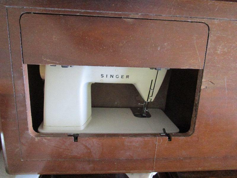 #1  Singer Sewing Machine in cabinet, with 15 cams, works well