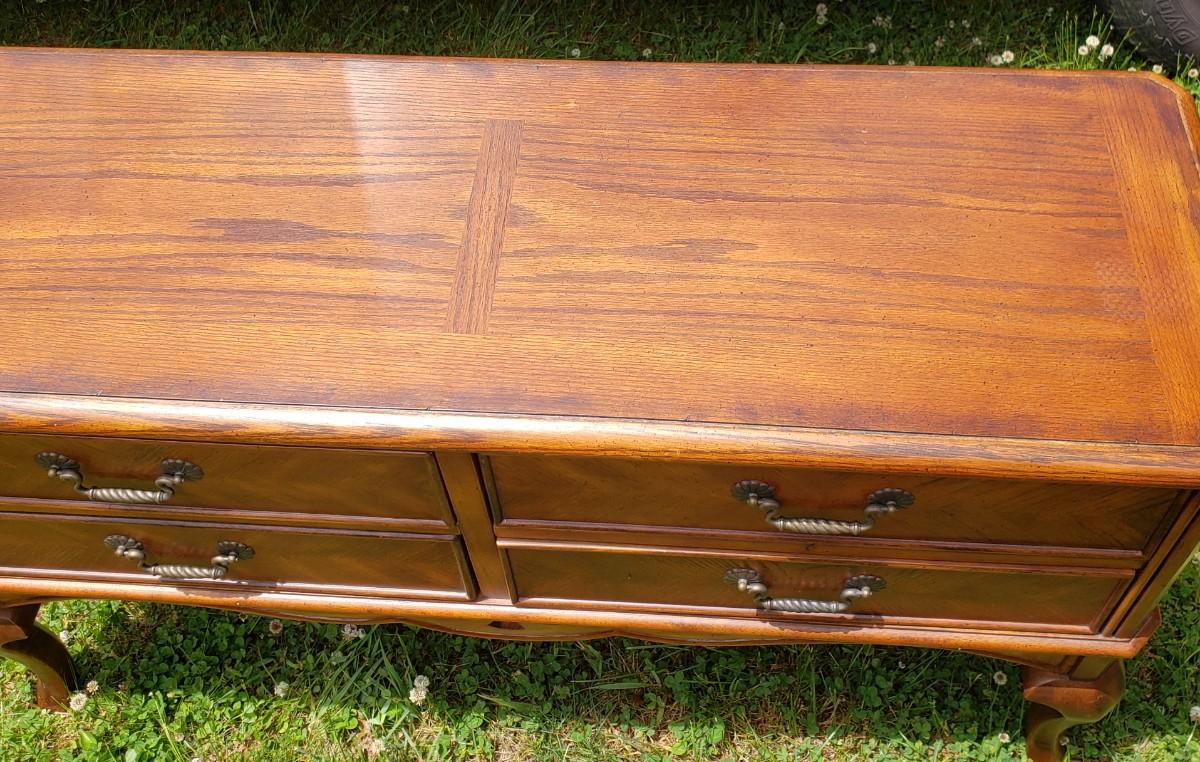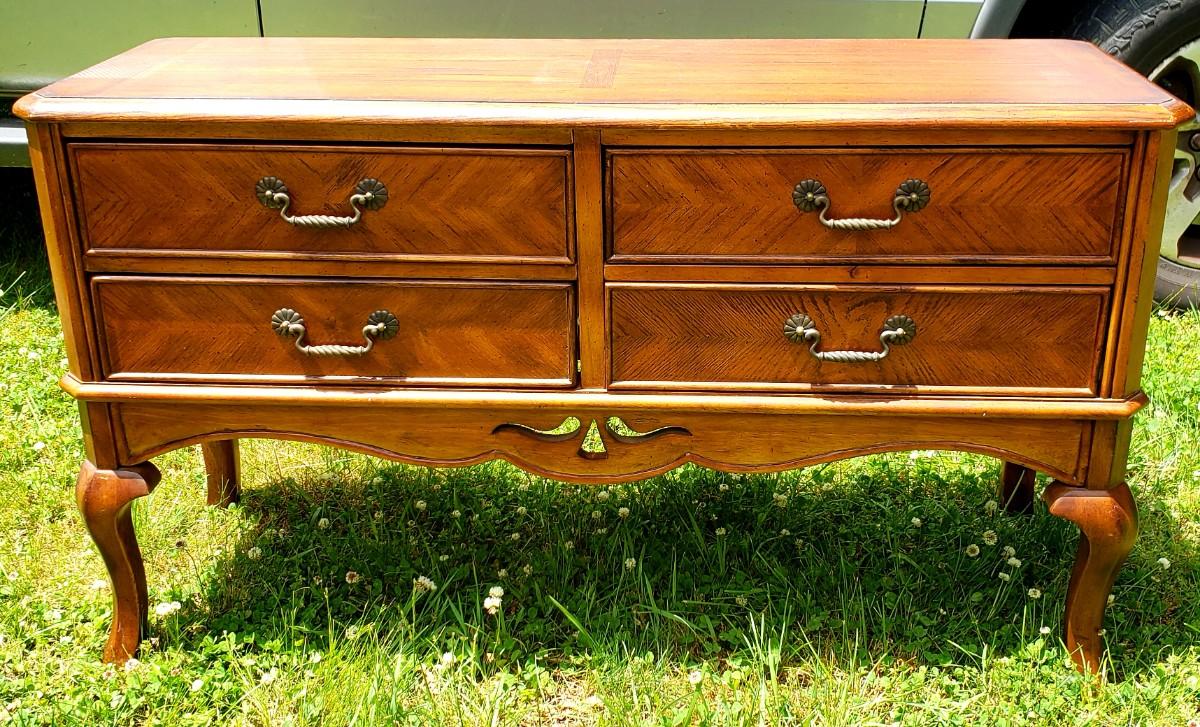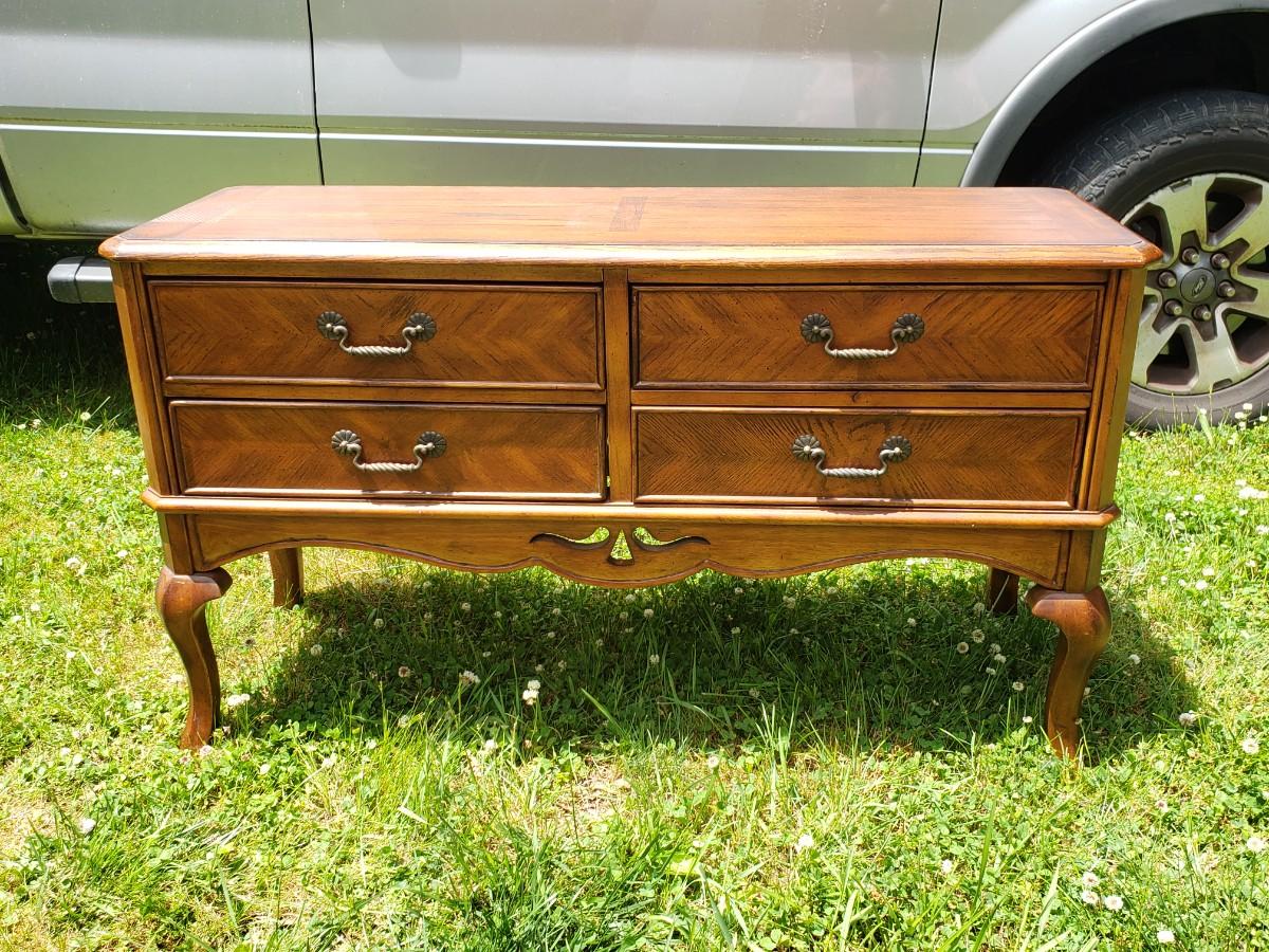 4 drawer sofa table measures 52"x18"x29.5"