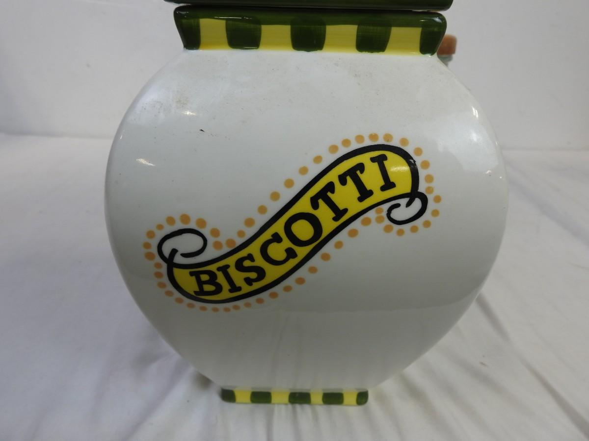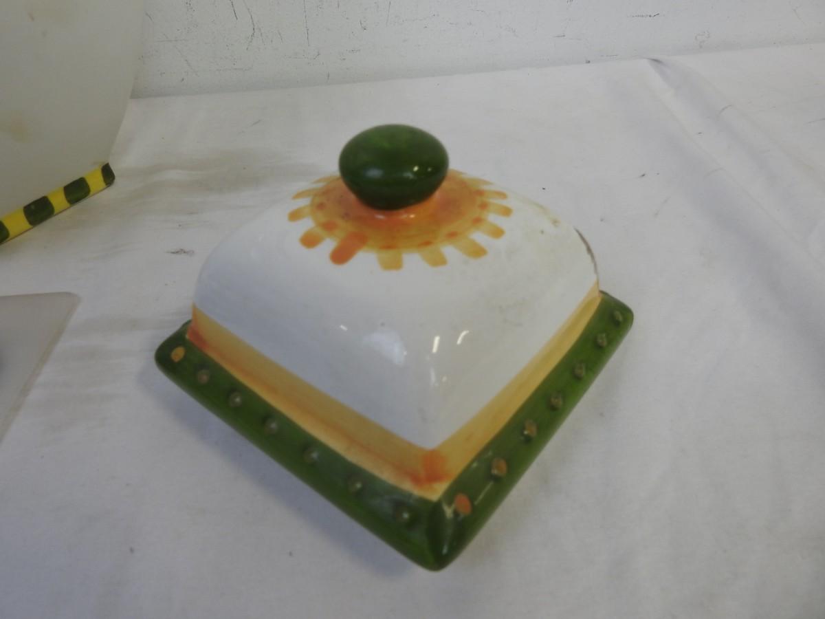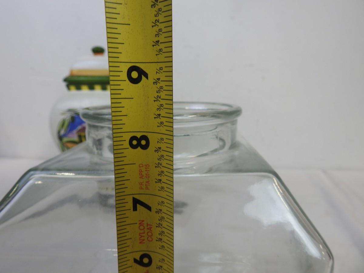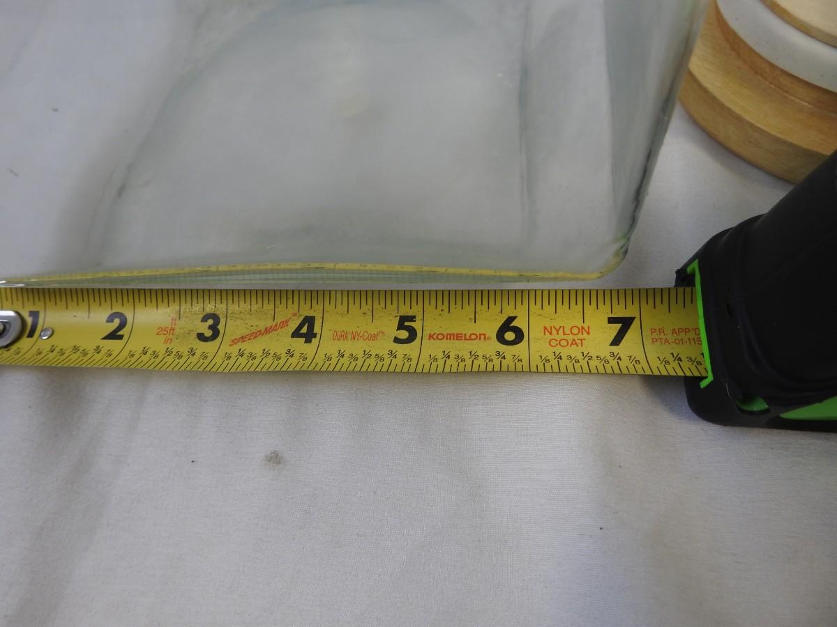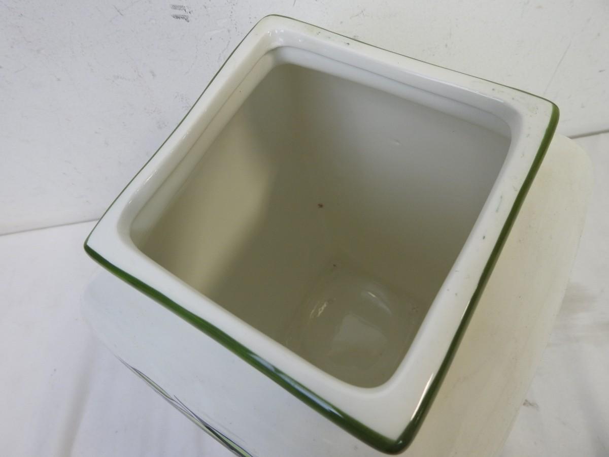 1 Square Glass Jar with Wood Lid, Ceramic Vase with Lid, Green/White with House