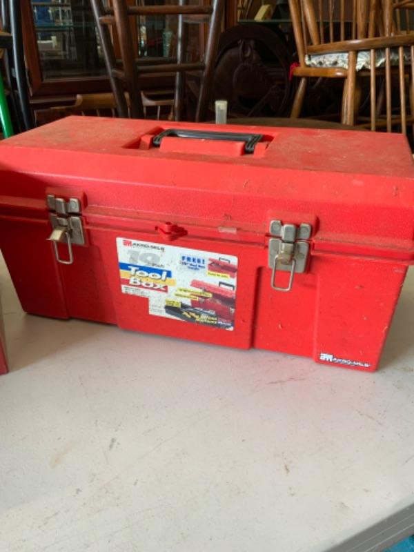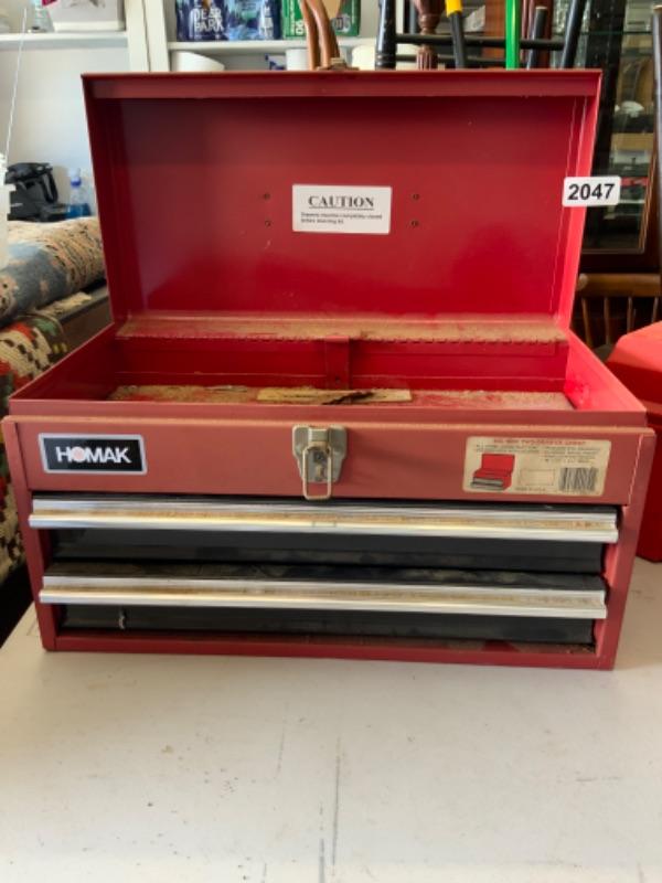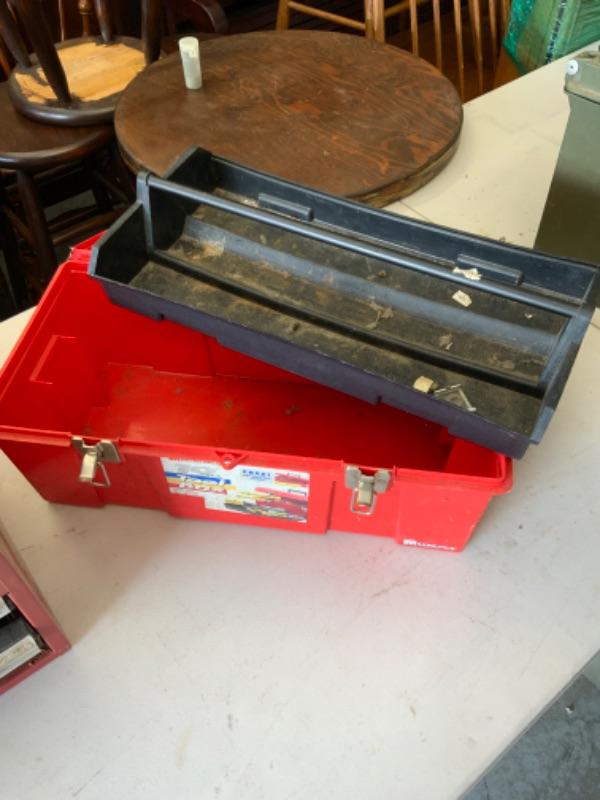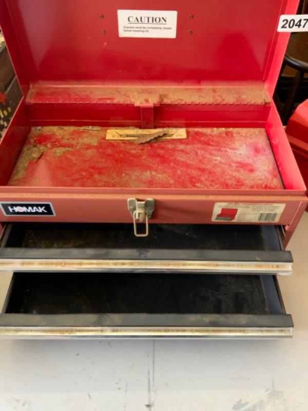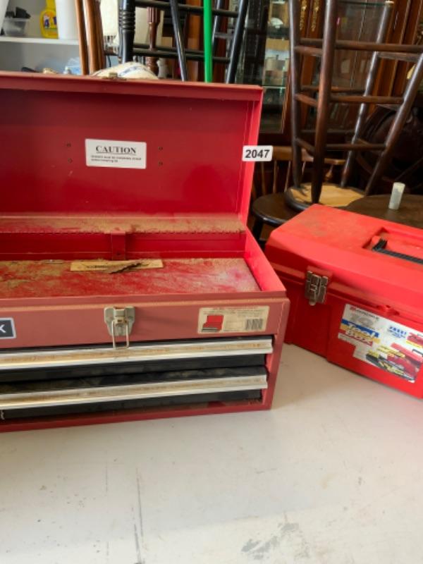 1 steel tool box with drawers and 1 plastic tool box Lot 2047