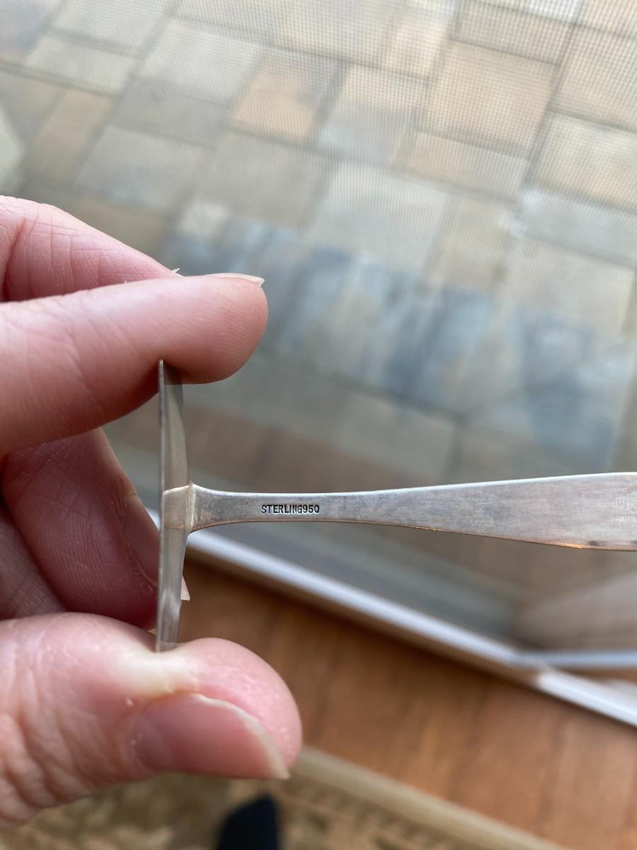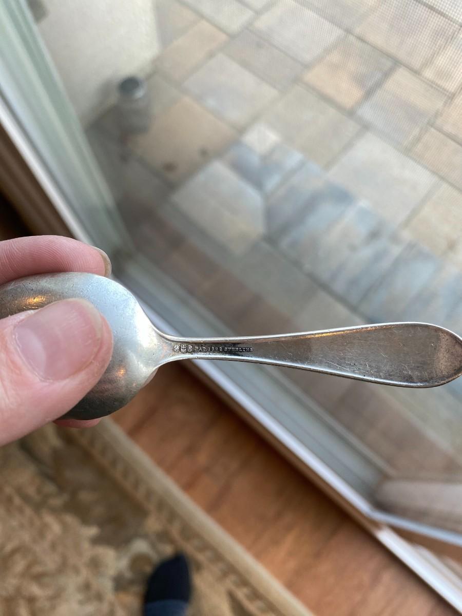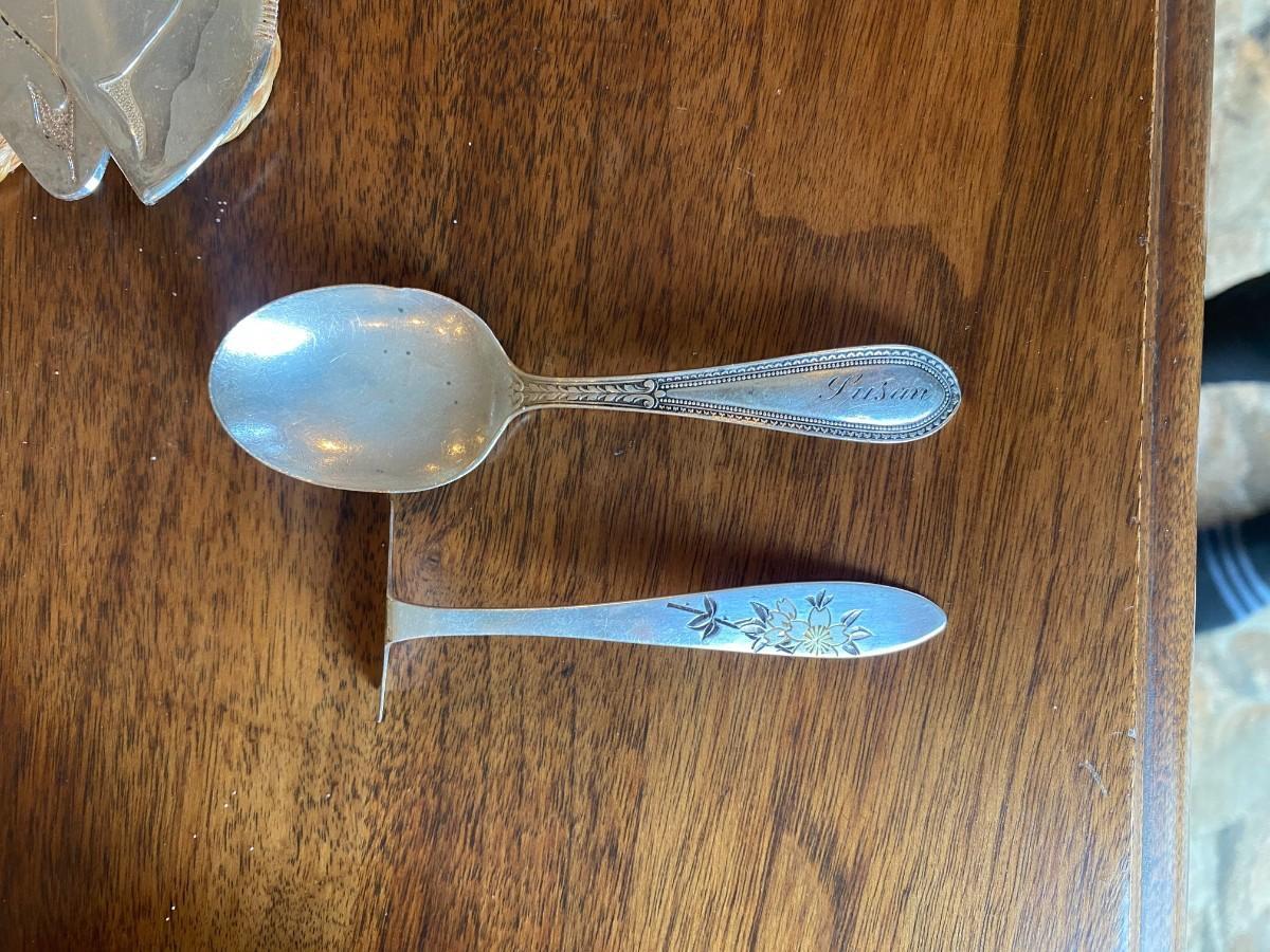 1 - Sterling silver baby food pusher and 1 Sterling baby spoon engraved with "Susan"