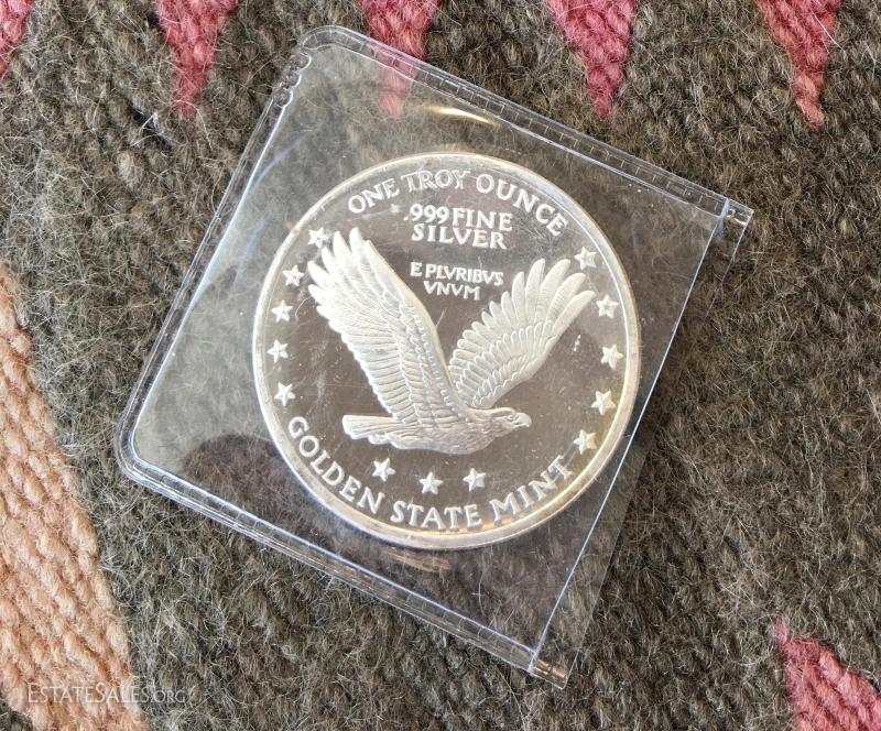 One .999 pure silver one ounce coin. Struck by the Golden State Mint.