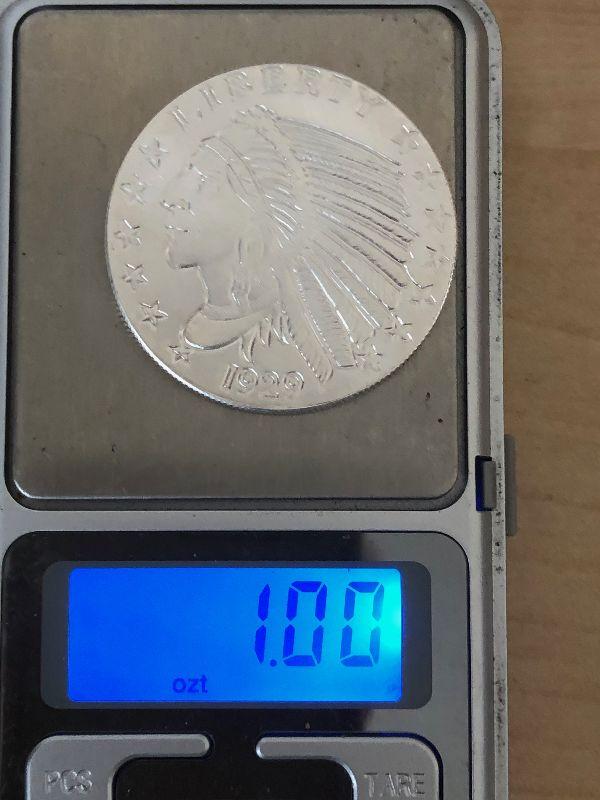 One Troy ounce silver round, un-circulated, pure .999 silver. Up to 8 available email me for details. Shipping is $3.95 for 1 coin and $1 for each additional coin.