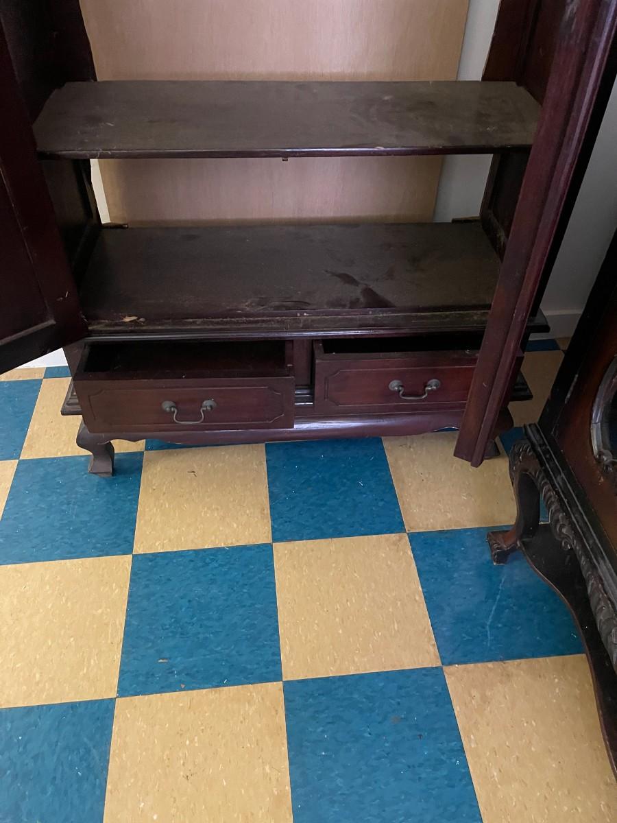 1 unbranded Vintage locking wood cabinet / bookcase / project piece, has key; back is off but can be reattached with nails.