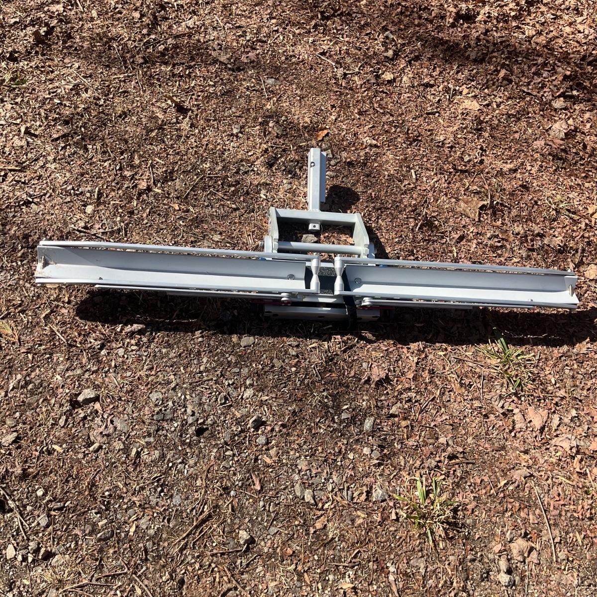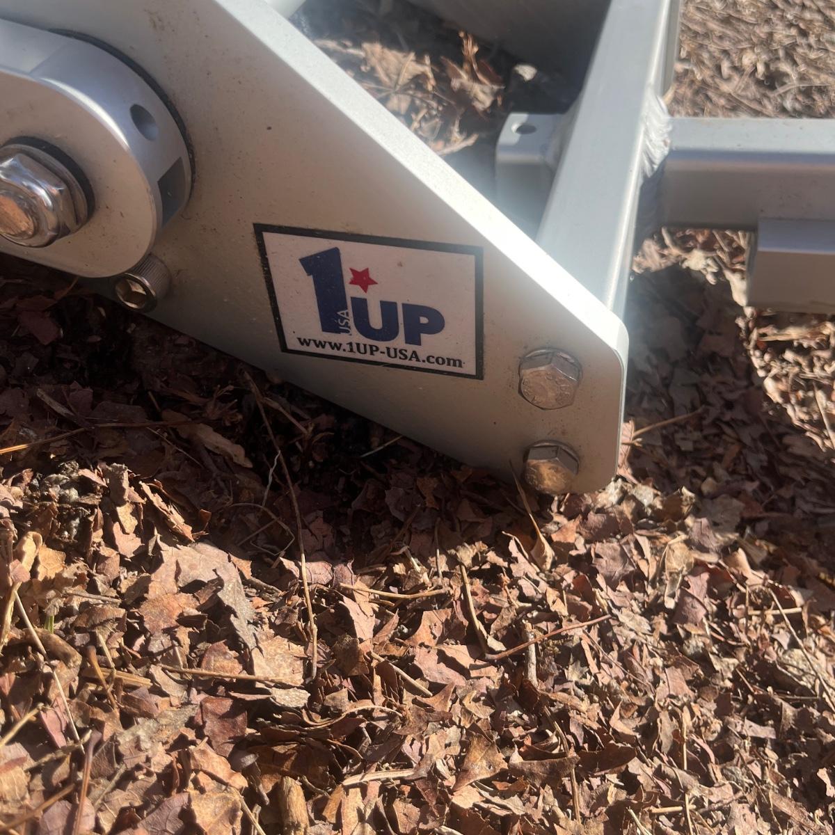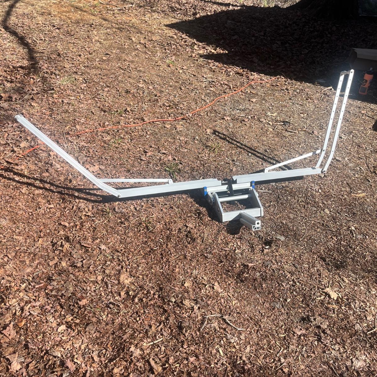 Lot includes an aluminum 1Up super duty single bike rack for a receiver hitch. Rack measures 81” x 21” x 33”H when opened all the way.