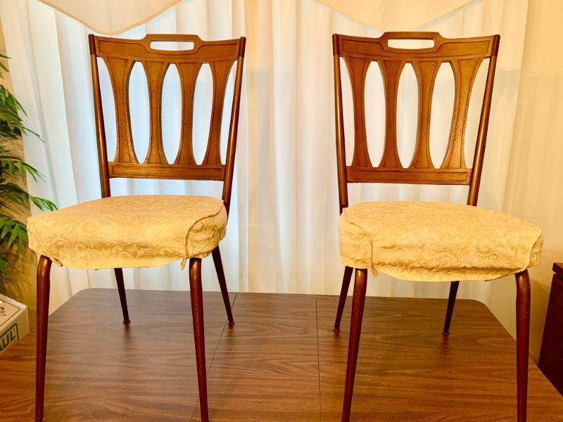 Formica vintage dinette set. Table, 4 chairs, & X-tra leaf Measurement with insert, 47 1/4" W x 35 1/2"D x 30 1/4"H