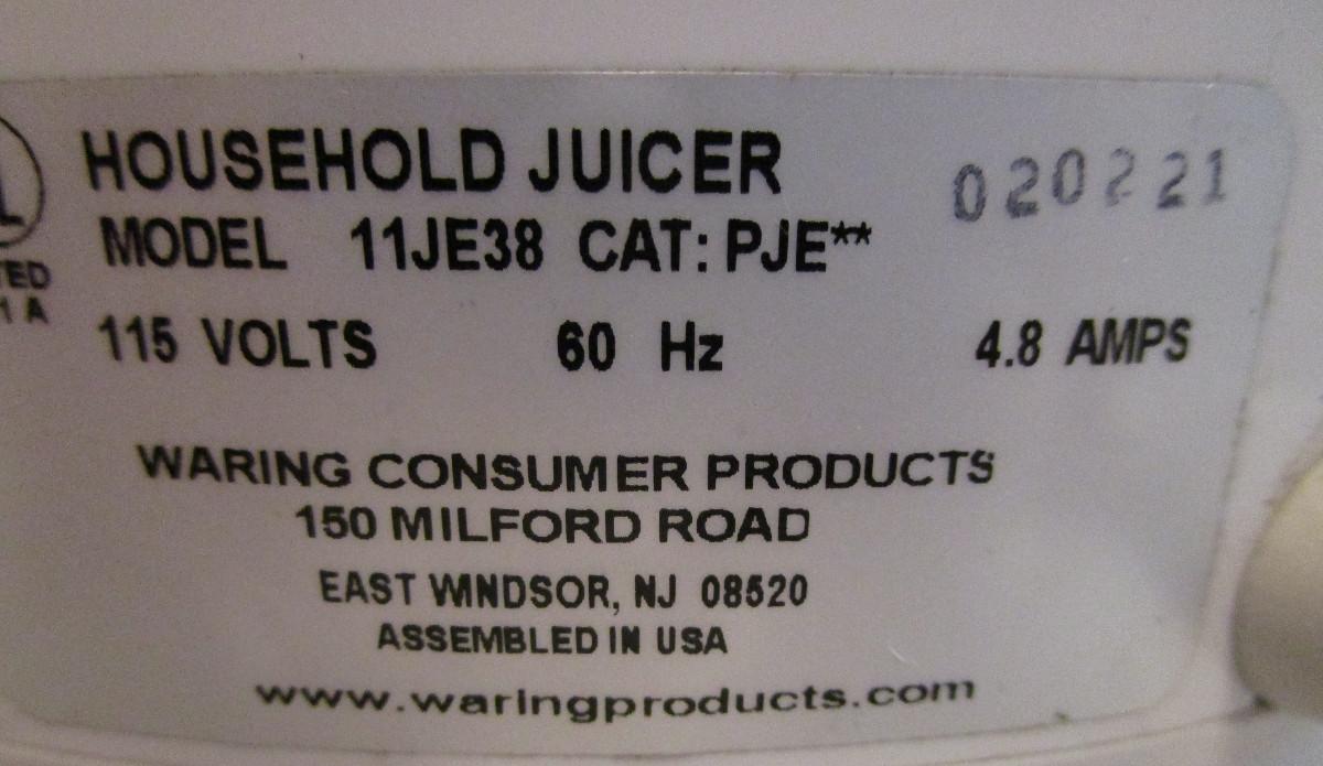 Waring Pro Professional Juice Extractor 4.8 amps Model #11JE38 PJE, tested works well