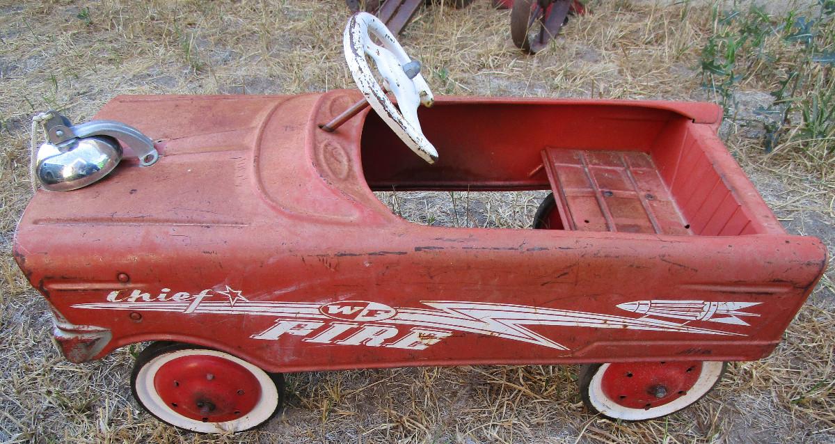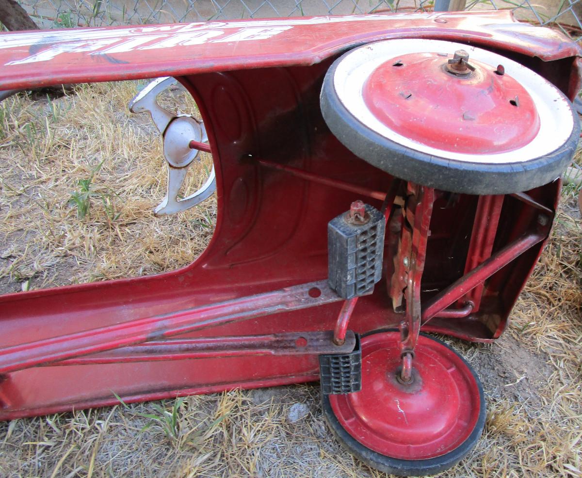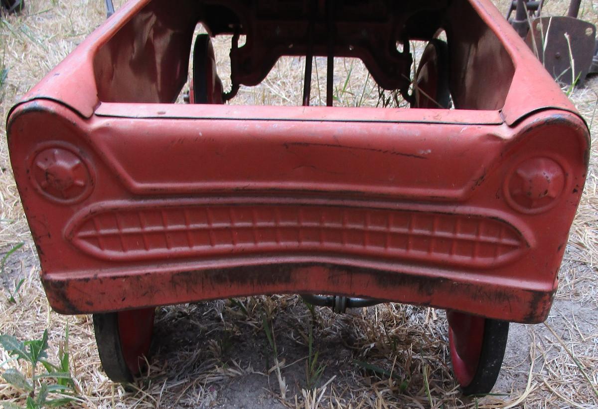 The pedal car is in good condition. One of the rear brackets is missing. The car works fine. It is just if you pick it up you notice the bracket missing