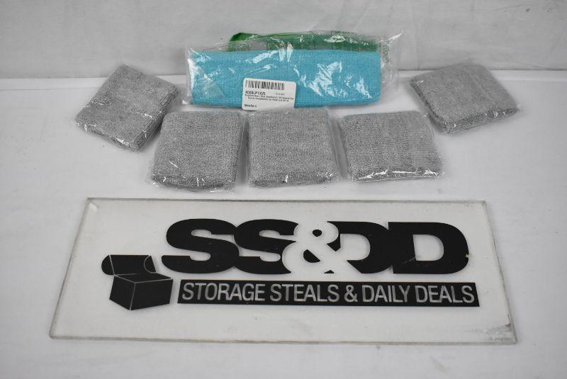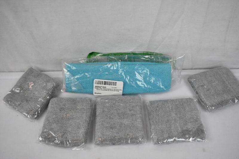 1 Workout Headband (Turquoise) & 5 Wrist Sweatbands (Gray) - New