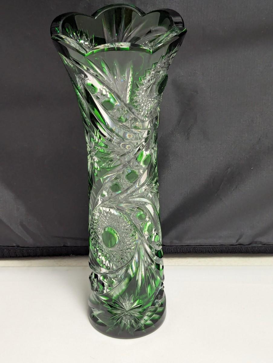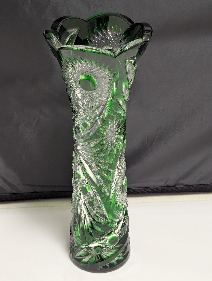 10 1/2" Tall Carved Bohemian Crystal Vase