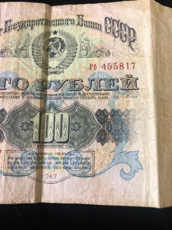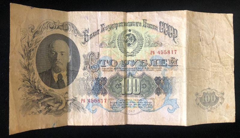 #10 1947 Russian Bank Note Denotes '100"
