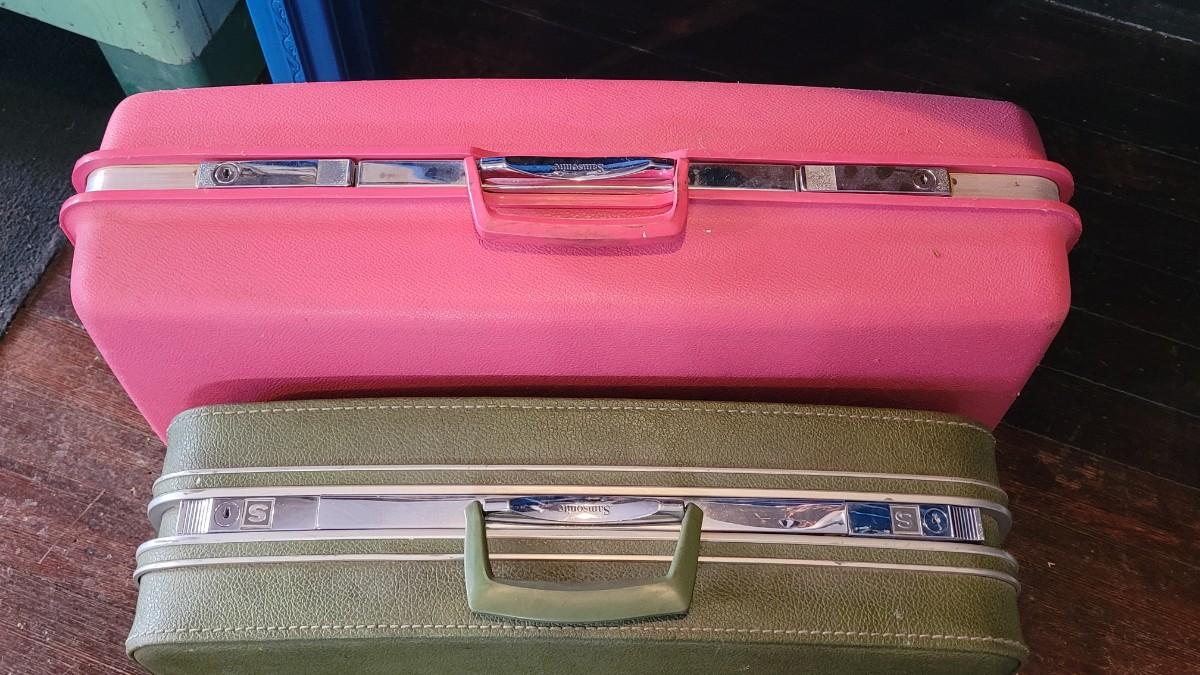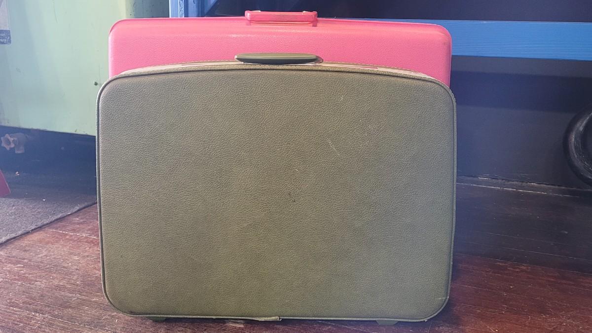 10: Vintage Green & Pink Hardcase Luggage