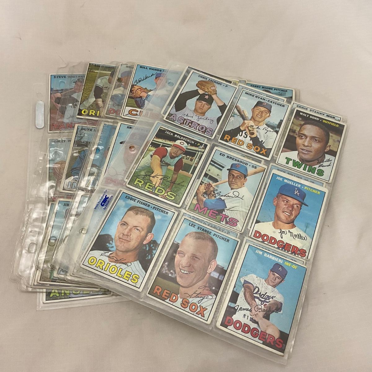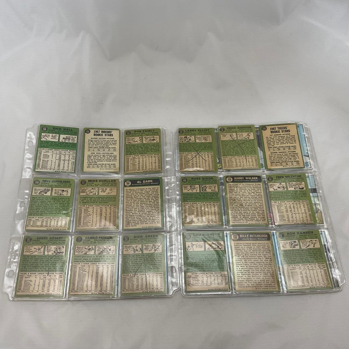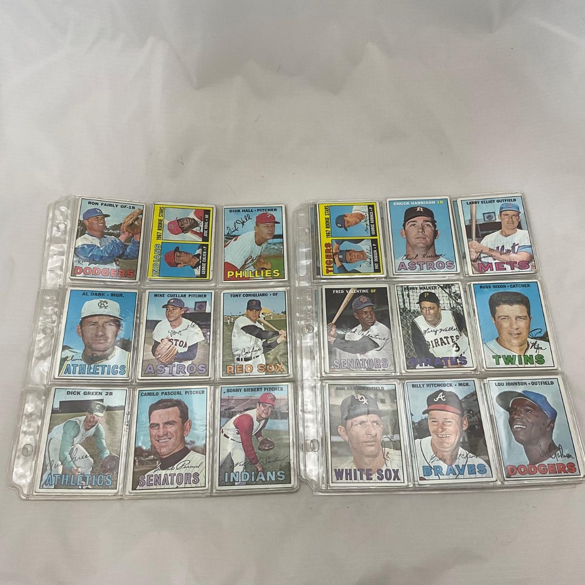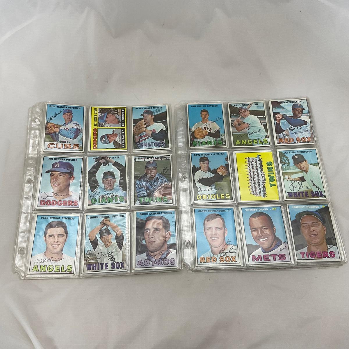Collection of 1967 TOPPS vintage baseball cards. Nine pages of cards. There does seem to be some imperfections on some of the cards, as pictured. The nine pages of cards will come with a binder to transport. Please see photos for details and condition. ::: Shipping is available on this lot. If you require shipping you must let us know at the close of the auction. We will coordinate with you after the item has been won. Shipping fees will include insurance up to or exceeding the value of all items being mailed. If you have any questions regarding this lot please contact the auctioneer either via this website, by direct email or by phone. PICK UP TIMES and other important information can be found in the TERMS and DESCRIPTION of the auction. Please take a look for pertinent information. Thanks!