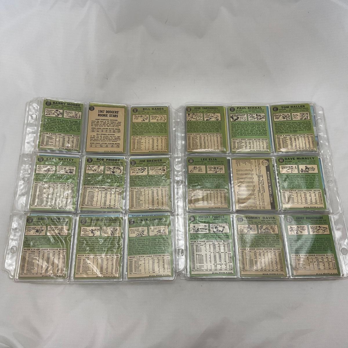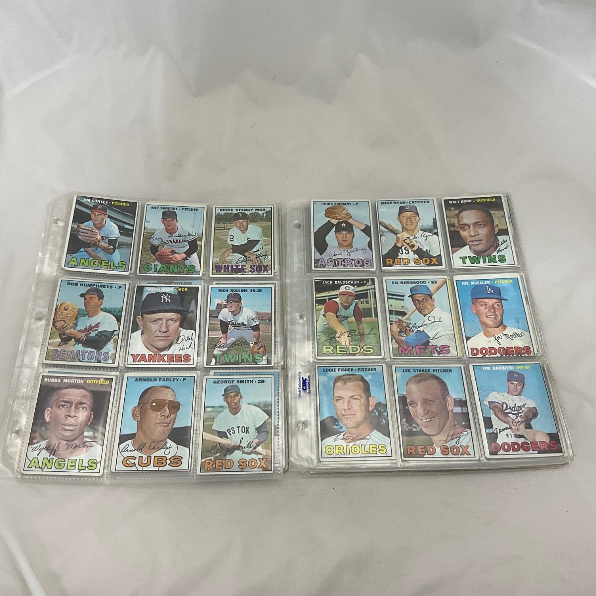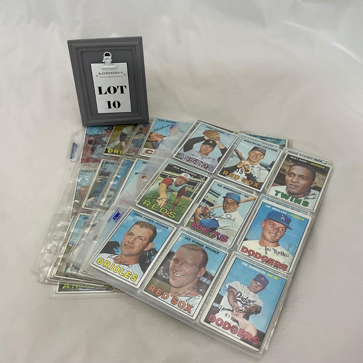Collection of 1967 TOPPS vintage baseball cards. Nine pages of cards. There does seem to be some imperfections on some of the cards, as pictured. The nine pages of cards will come with a binder to transport. Please see photos for details and condition. ::: Shipping is available on this lot. If you require shipping you must let us know at the close of the auction. We will coordinate with you after the item has been won. Shipping fees will include insurance up to or exceeding the value of all items being mailed. If you have any questions regarding this lot please contact the auctioneer either via this website, by direct email or by phone. PICK UP TIMES and other important information can be found in the TERMS and DESCRIPTION of the auction. Please take a look for pertinent information. Thanks!