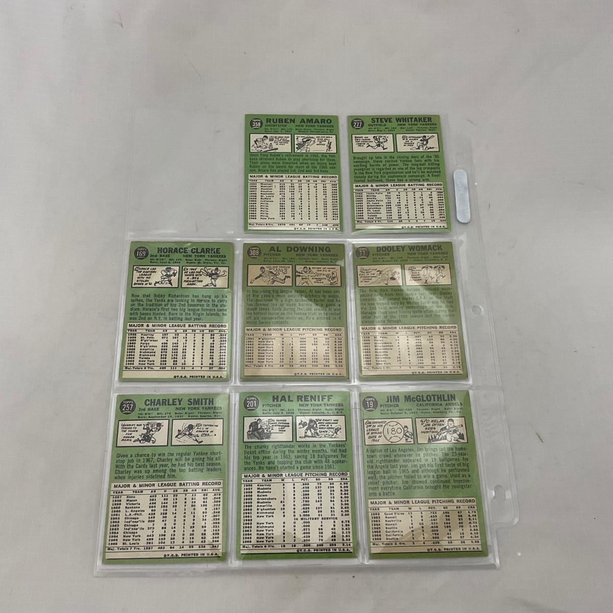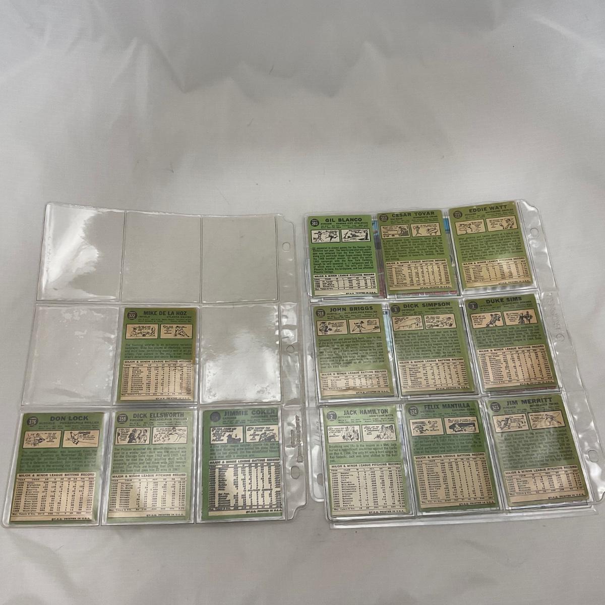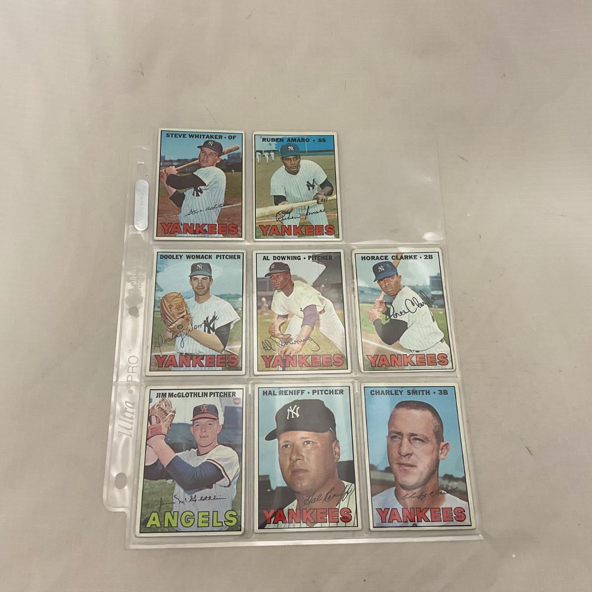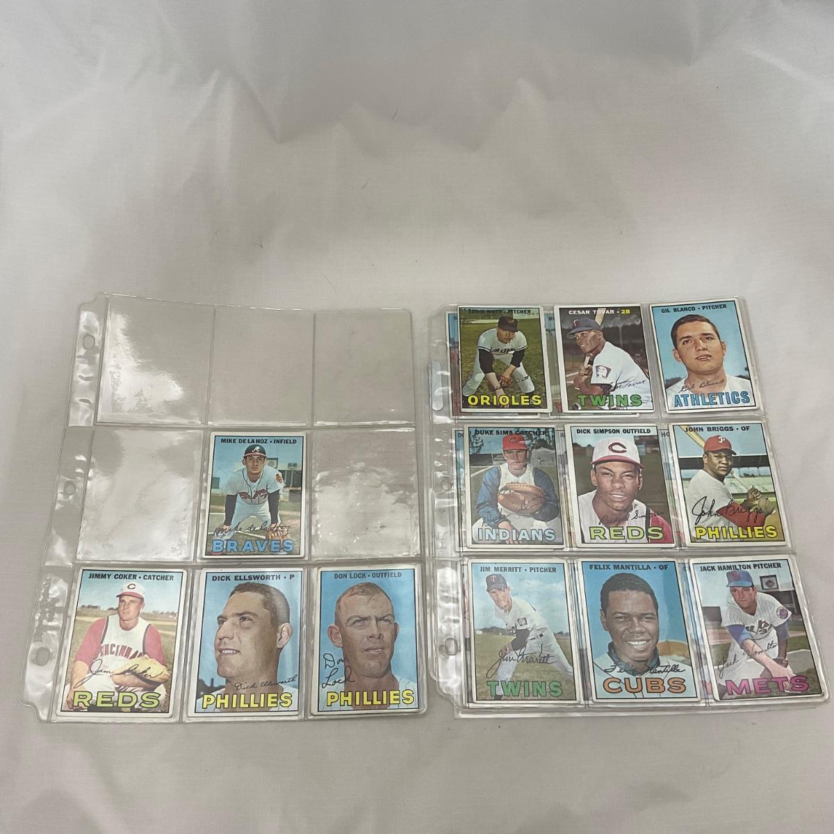 Collection of 1967 TOPPS vintage baseball cards. Nine pages of cards. There does seem to be some imperfections on some of the cards, as pictured. The nine pages of cards will come with a binder to transport. Please see photos for details and condition. ::: Shipping is available on this lot. If you require shipping you must let us know at the close of the auction. We will coordinate with you after the item has been won. Shipping fees will include insurance up to or exceeding the value of all items being mailed. If you have any questions regarding this lot please contact the auctioneer either via this website, by direct email or by phone. PICK UP TIMES and other important information can be found in the TERMS and DESCRIPTION of the auction. Please take a look for pertinent information. Thanks!