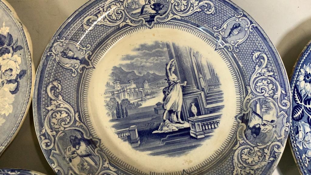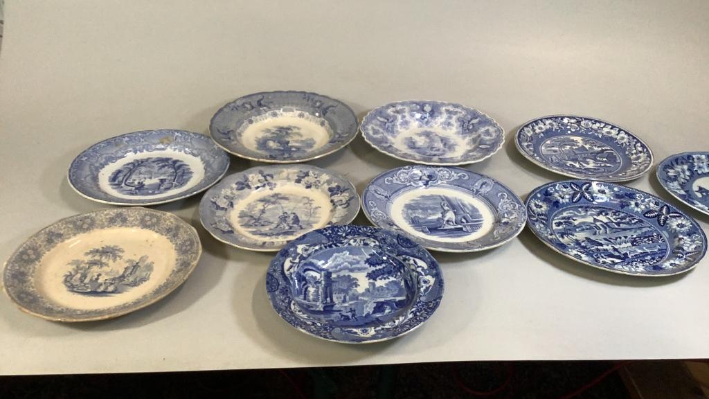 10 Blue Transferware Plates