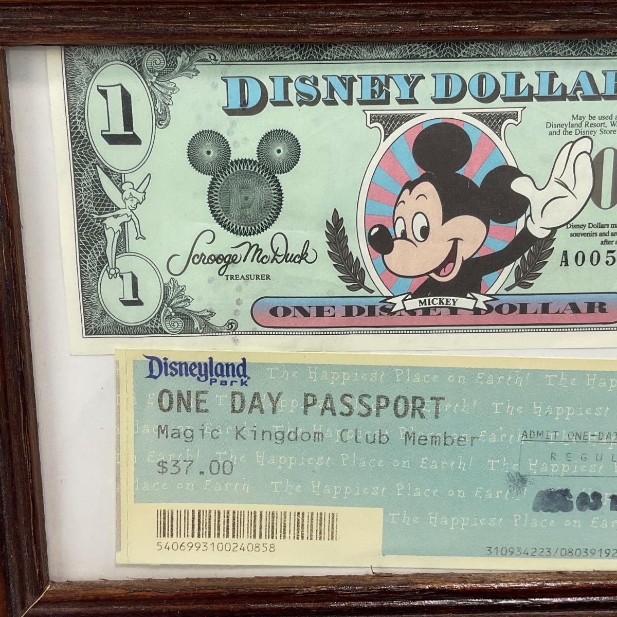 -10- CURRENCY | Vintage 1999 Disney Dollar & Magic Kingdom Ticket