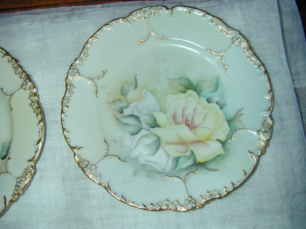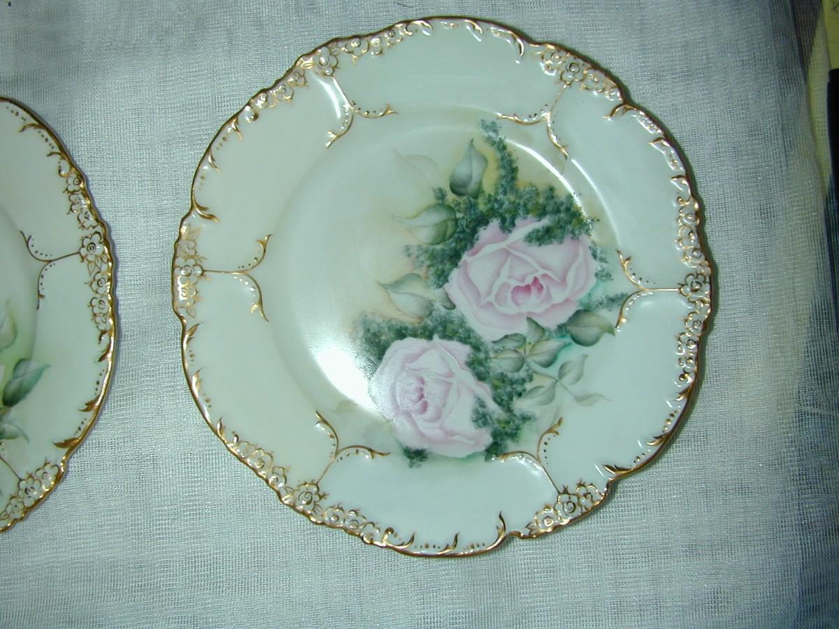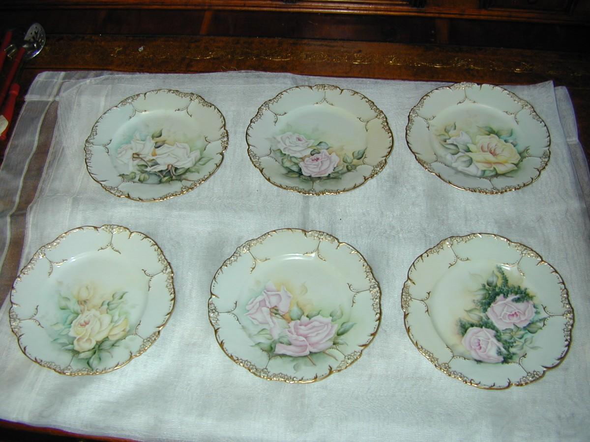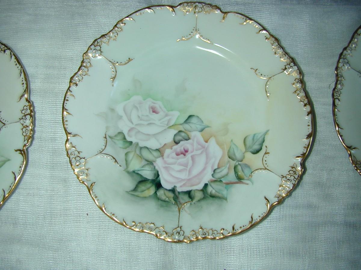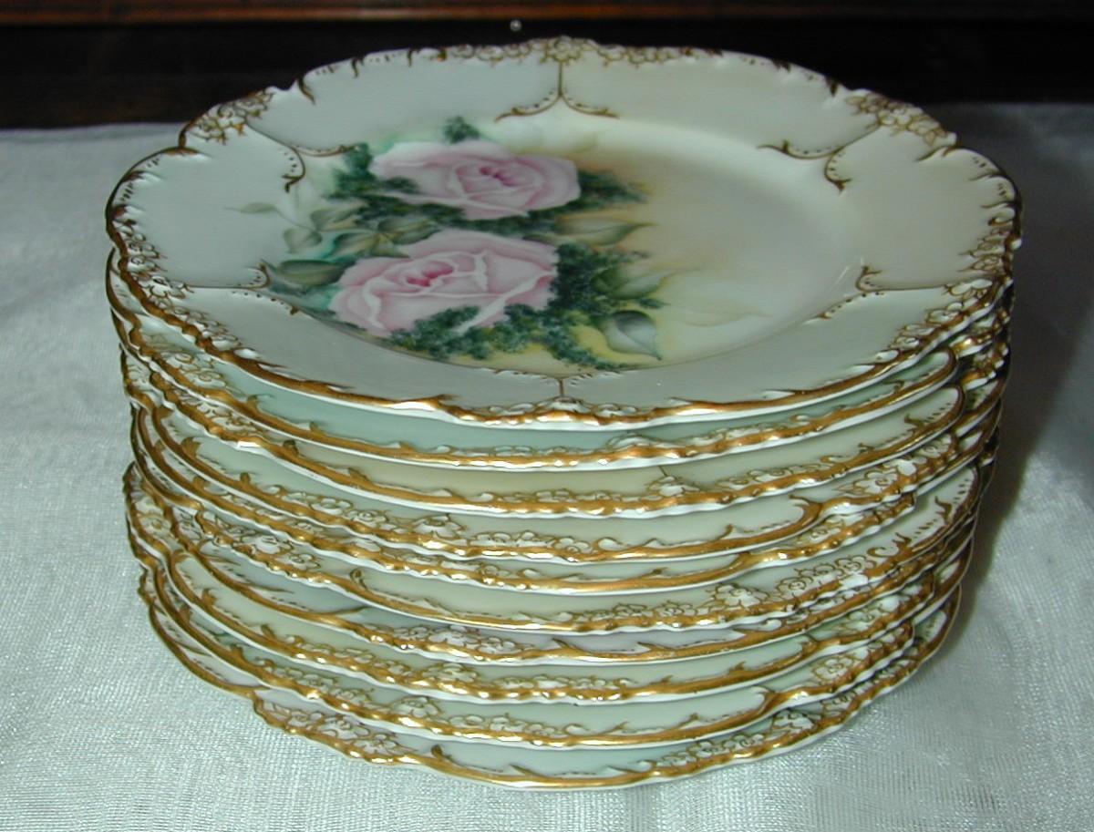 10 Early JPL France Hand Painted Gilt Gold Porcelain Plates