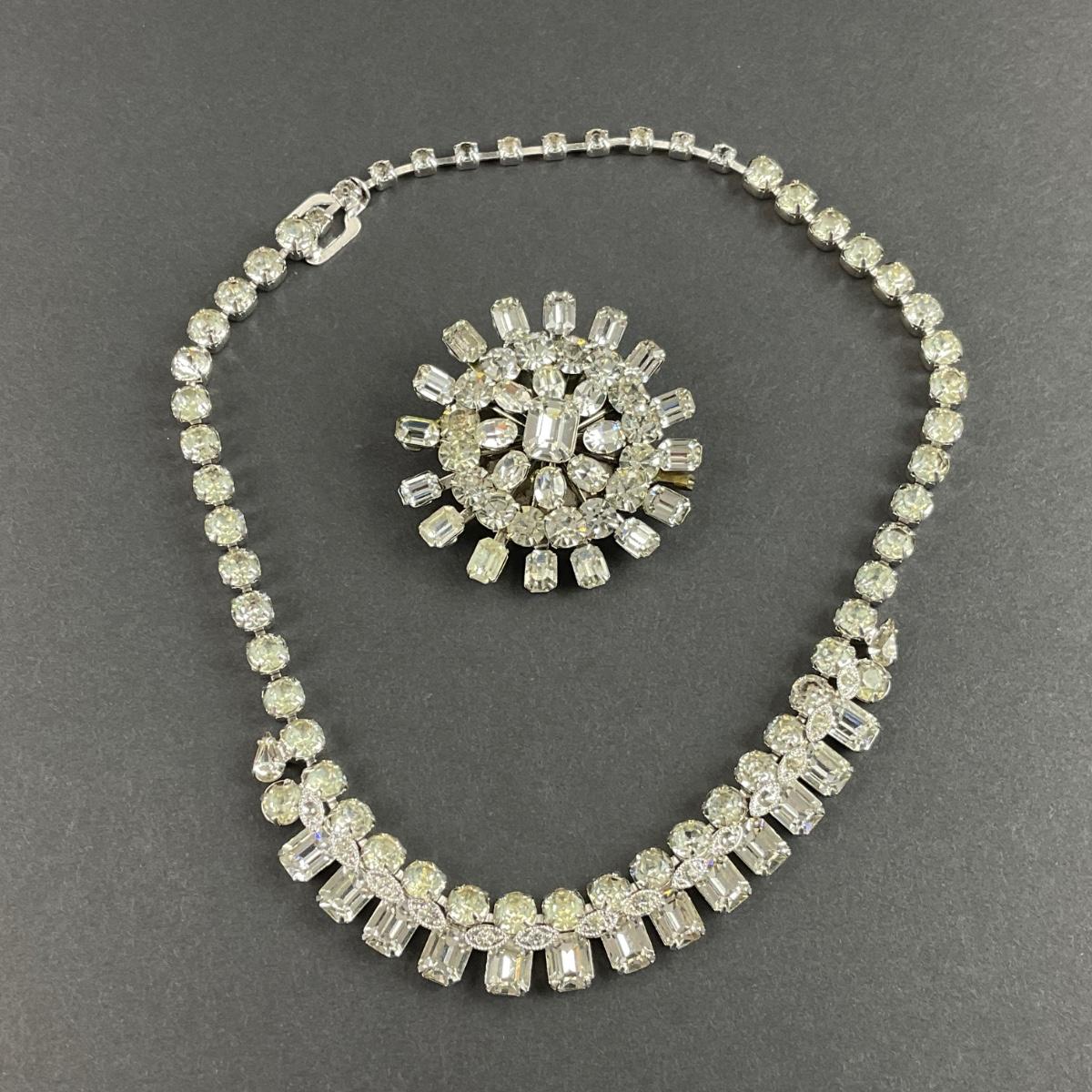 -10- EISENBERG ICE | Rhinestone Necklace & Unmarked Rhinestone Brooch