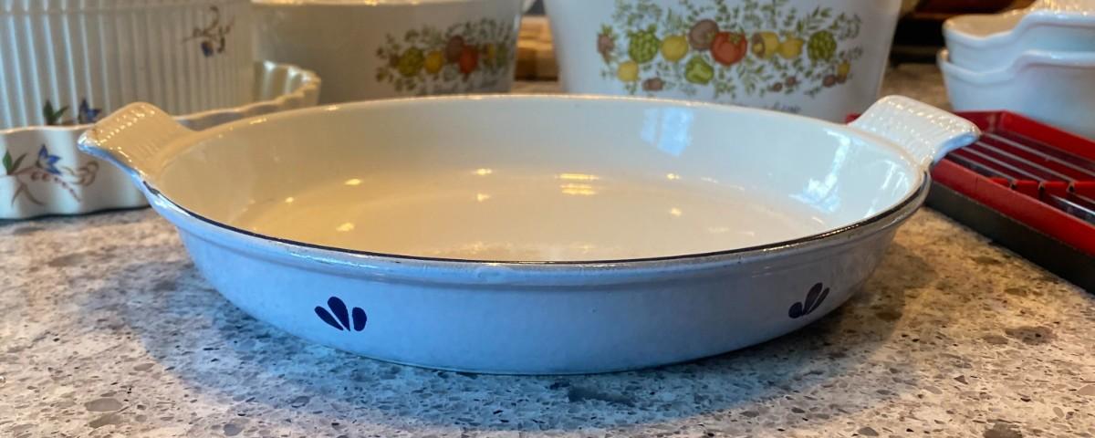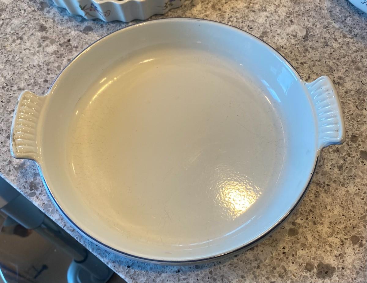 10" enameled cast iron blue tulip Descoware no chips - missing lid.