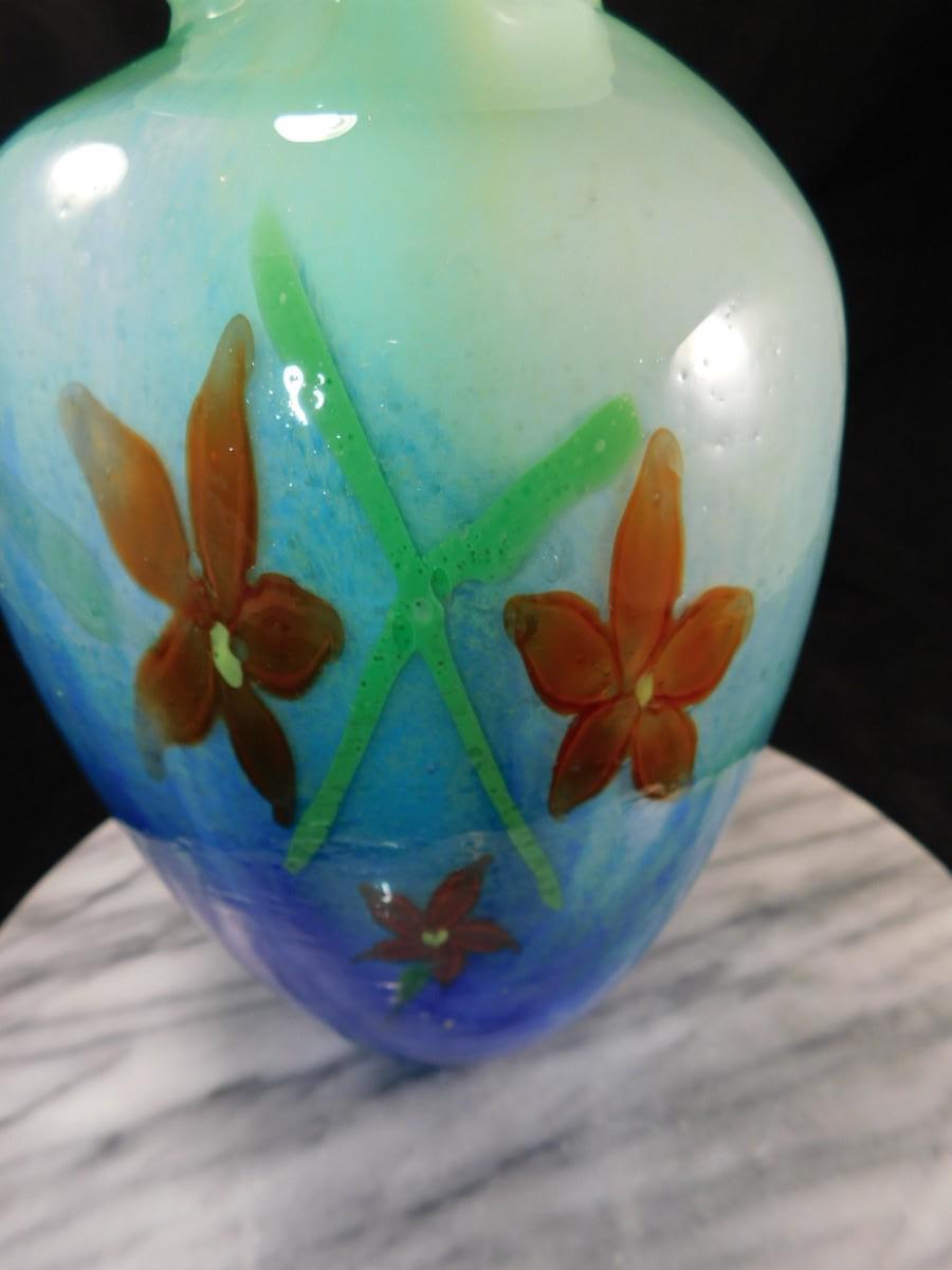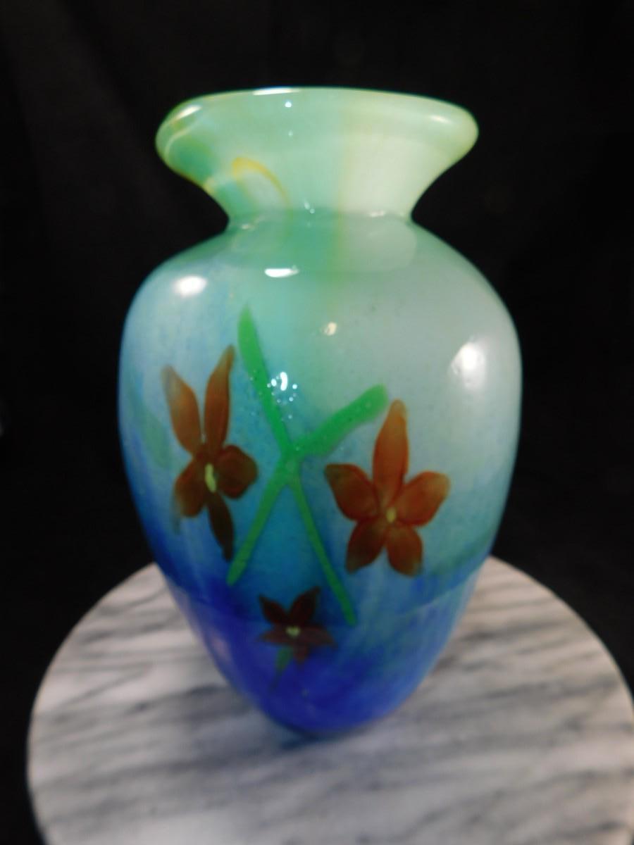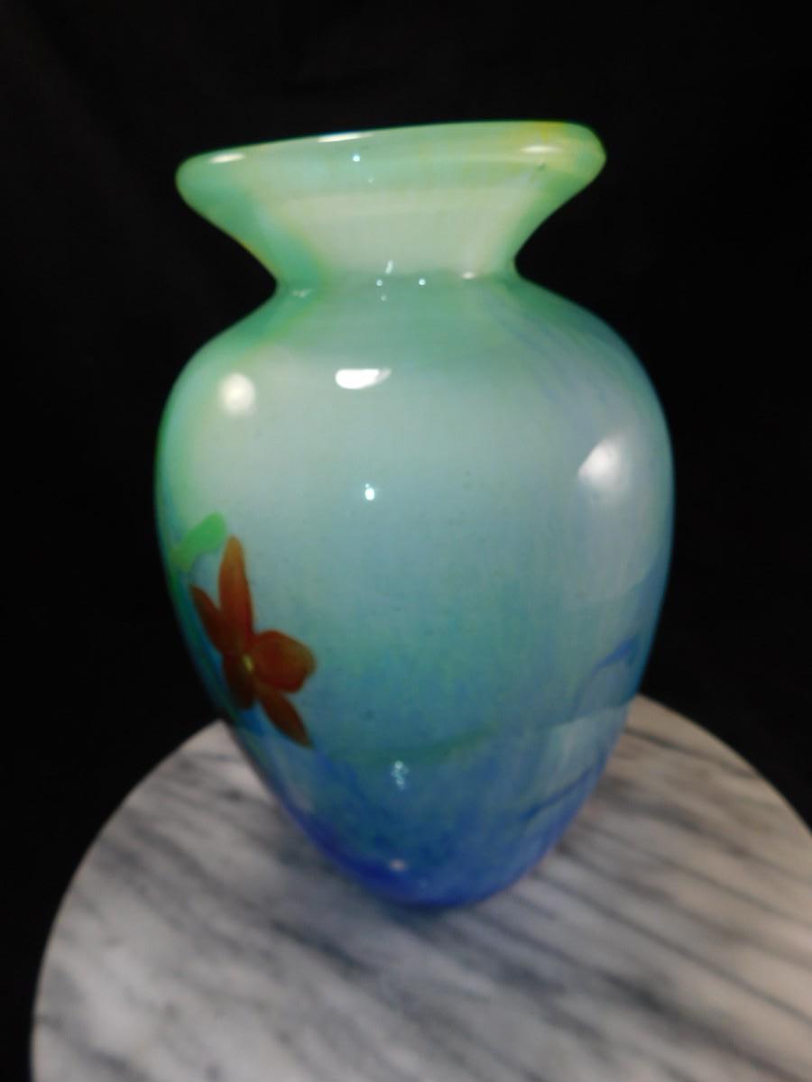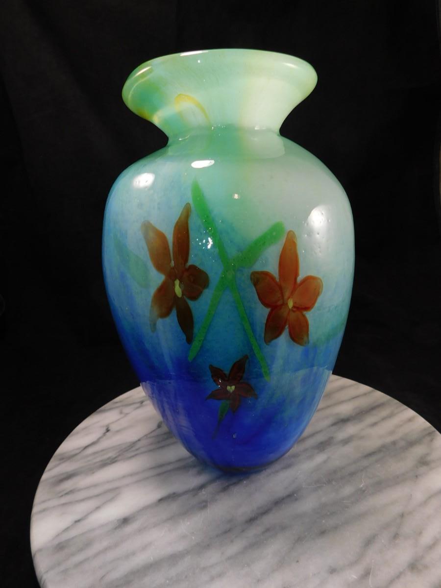 10” Encased Art Glass Floral Murano Style Vase, Thick