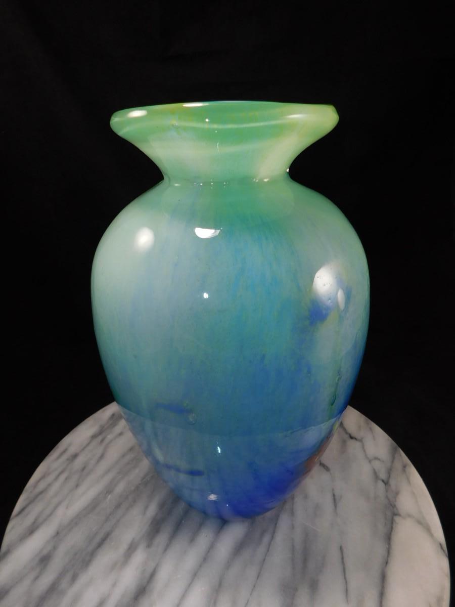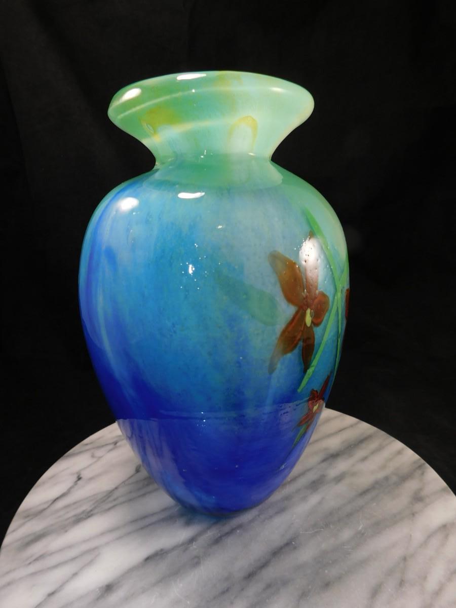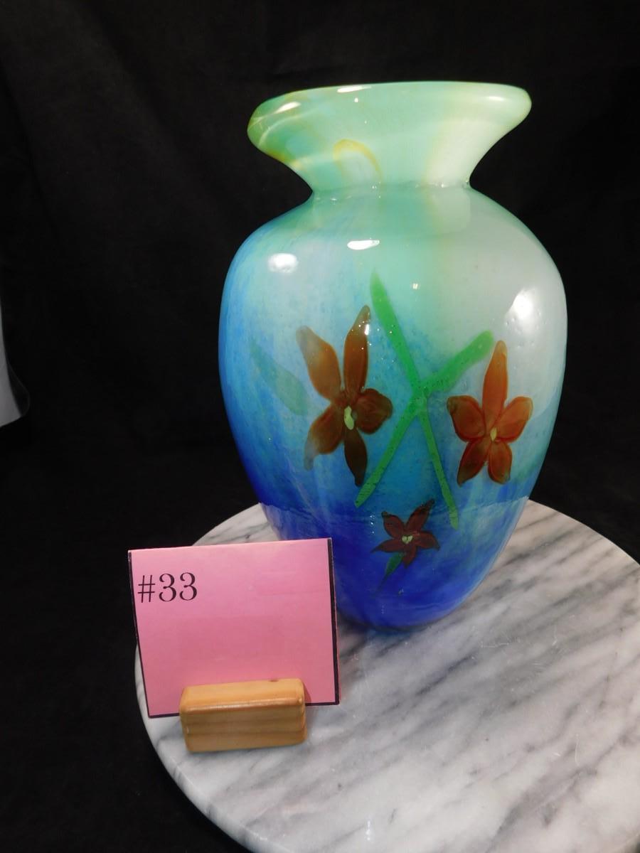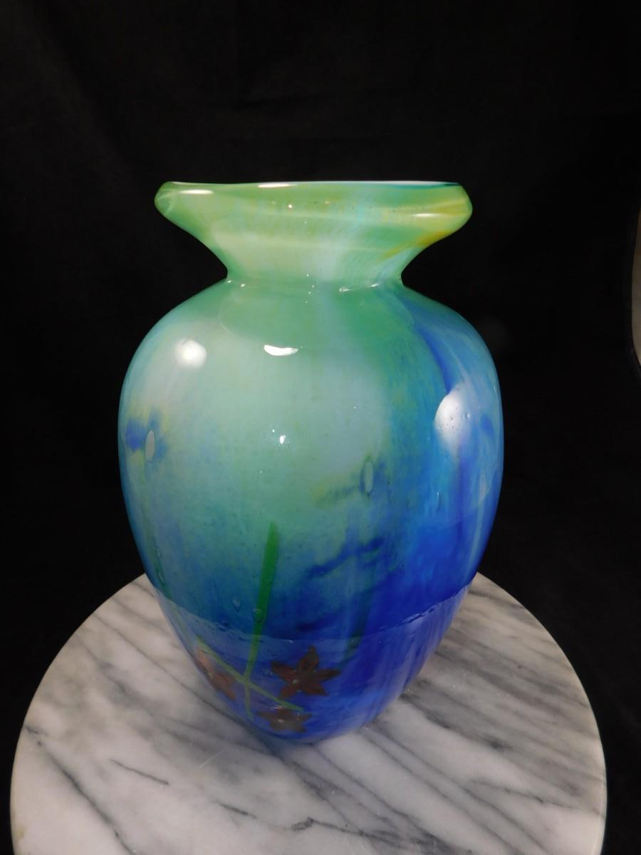 10” Encased Art Glass Floral Murano Style Vase, Thick